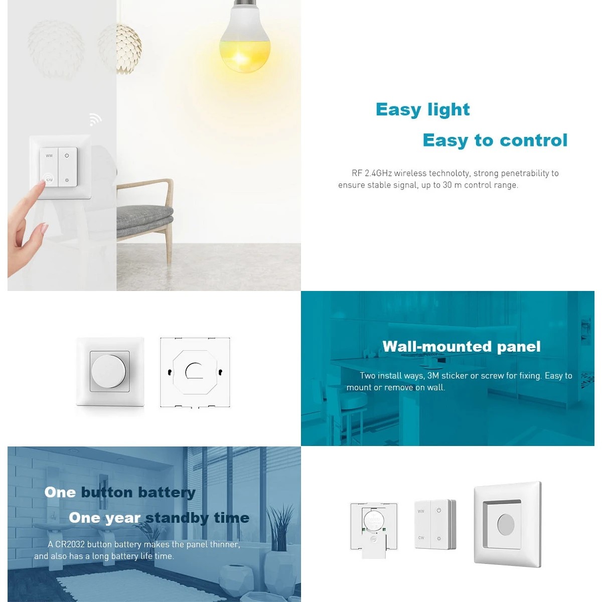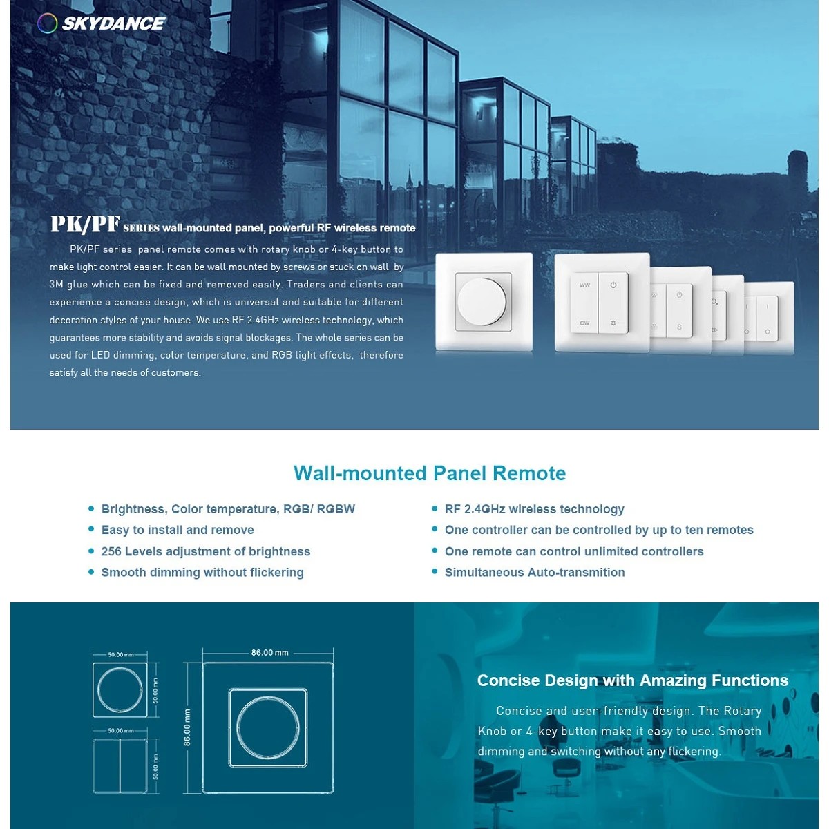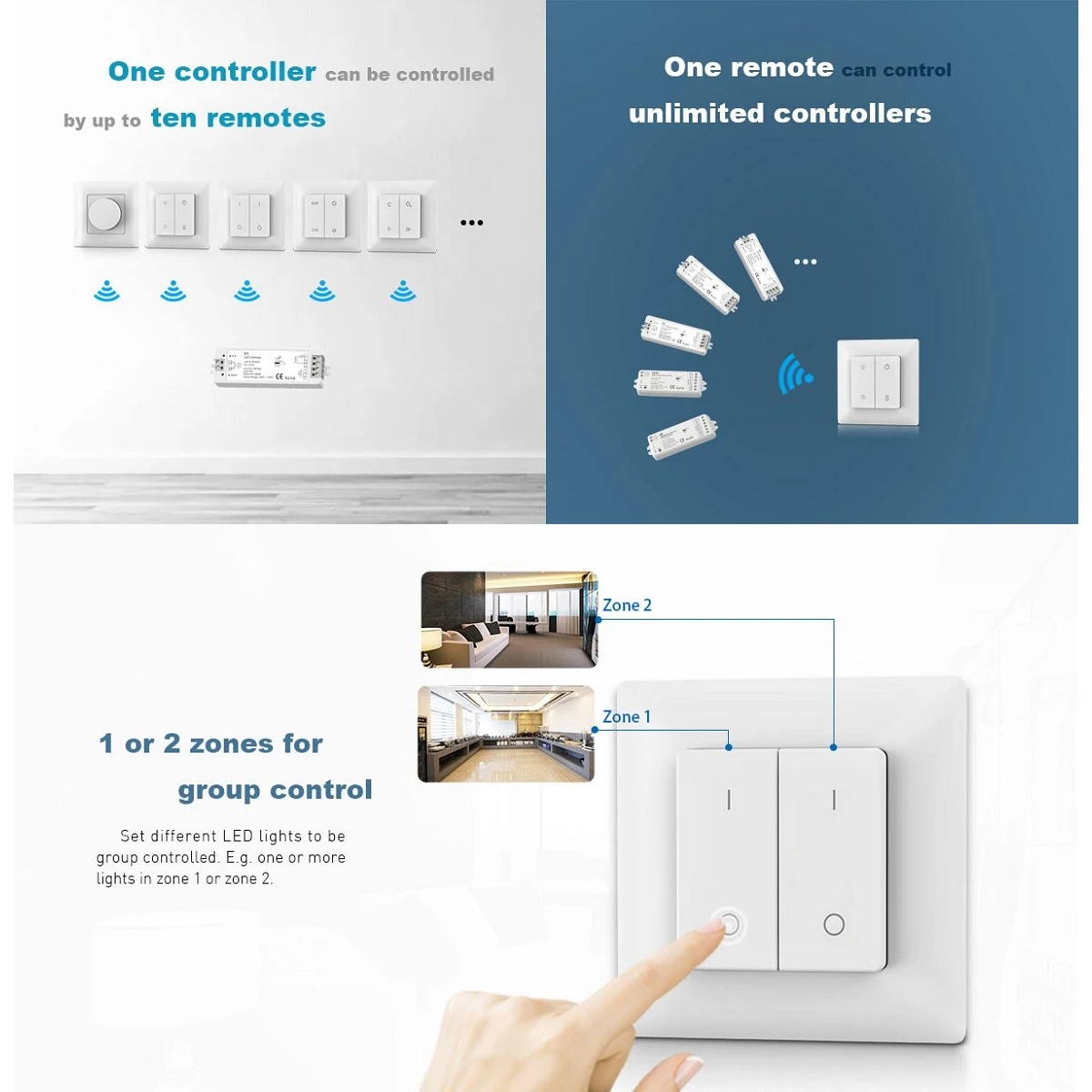 GloboStar® 73122 PF1-2 SKYDANCE Ασύρματο Επιτοίχιο Χειριστήριο 2 Group RF 2.4Ghz DC3V IP20 - Μ8.5 x Π8.5 x Υ1.7cm - 5 Χρόνια Εγγύηση