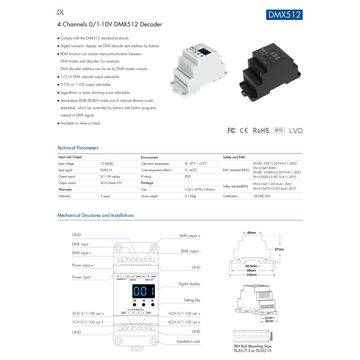 GloboStar® 73139 DL SKYDANCE DC DMX512 Signal Amplifier Din Rail Ράγας 2 Καναλιών DC 12-48V - IP20 Μ11.5 x Π5 x Υ6.5cm - 5 Χρόνια Εγγύηση