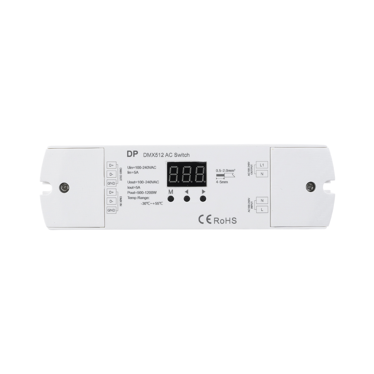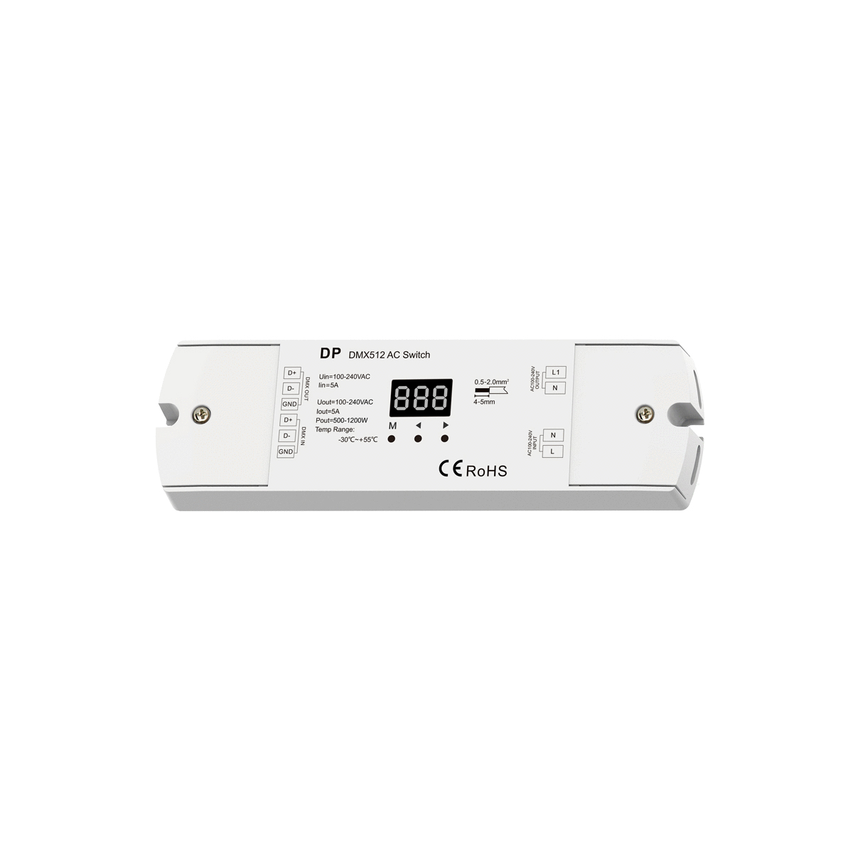 GloboStar® 73156 DP SKYDANCE AC DMX512 Push Switch 1 Κανάλι AC 100-240V 1 x 5A 1200W - Max 5A 1200W - IP20 Μ17 x Π5 x Υ2.5cm - 5 Χρόνια Εγγύηση