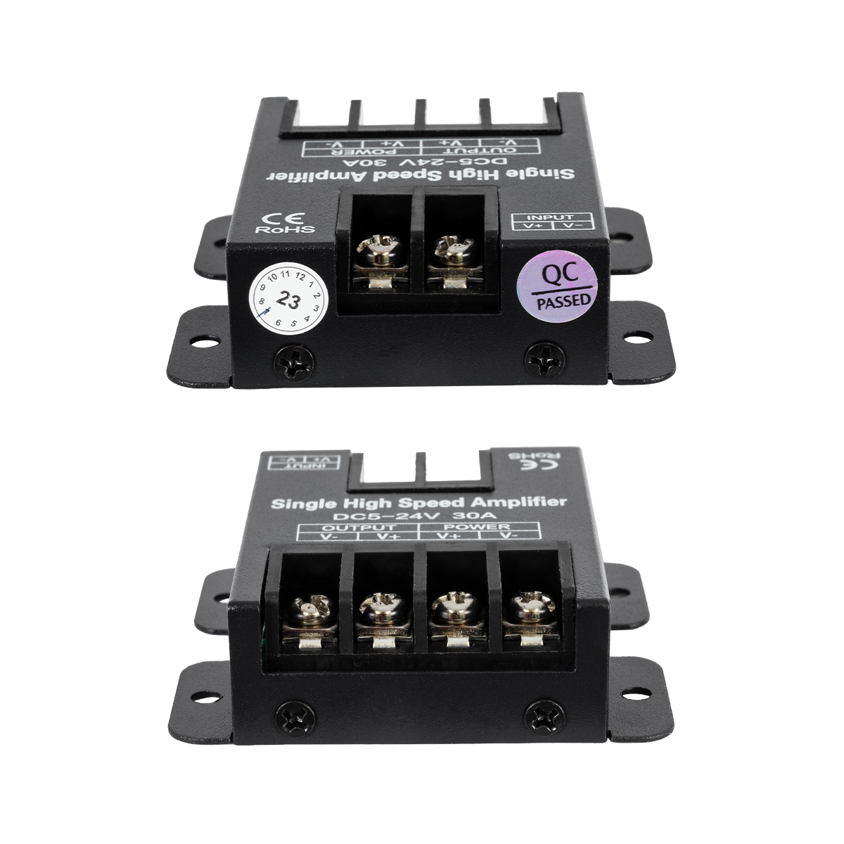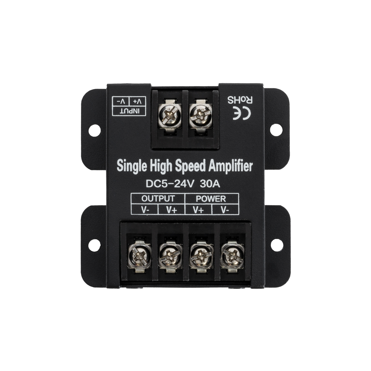 GloboStar® 73396 DC Power & Signal High Speed Amplifier Ενισχυτής Ισχύος & Σήματος Υψηλών Ταχυτήτων 1 Καναλιού DC 5-24V 1 x 30A 360W - Max 30A 360W - IP20 - Single Color - Μ6.3 x Π6.7 x Υ2cm - 2 Χρόνια Εγγύηση