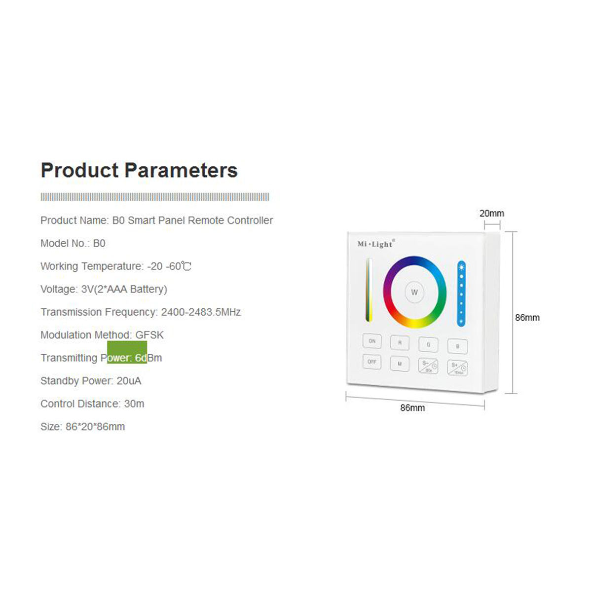 Τηλεχειριστήριο τοίχου πάνελ RGBCCT για προϊόντα της σειράς Milight.