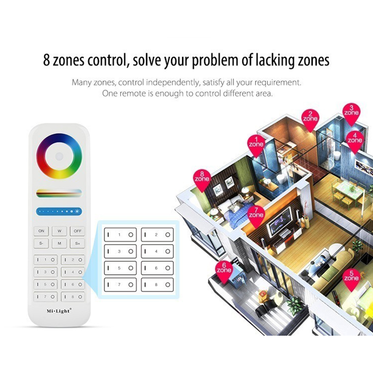 GloboStar® 73426 FUT089 Mi-Light Ασύρματο Χειριστήριο Αφής RF 2.4Ghz 8 Group για όλα τα RGBW+WW Mi-BOXER Controller DC 3V 2 x AAA - IP20 Λευκό - Μ15.6 x Π5.4 x Υ2.5cm - 5 Years Warranty