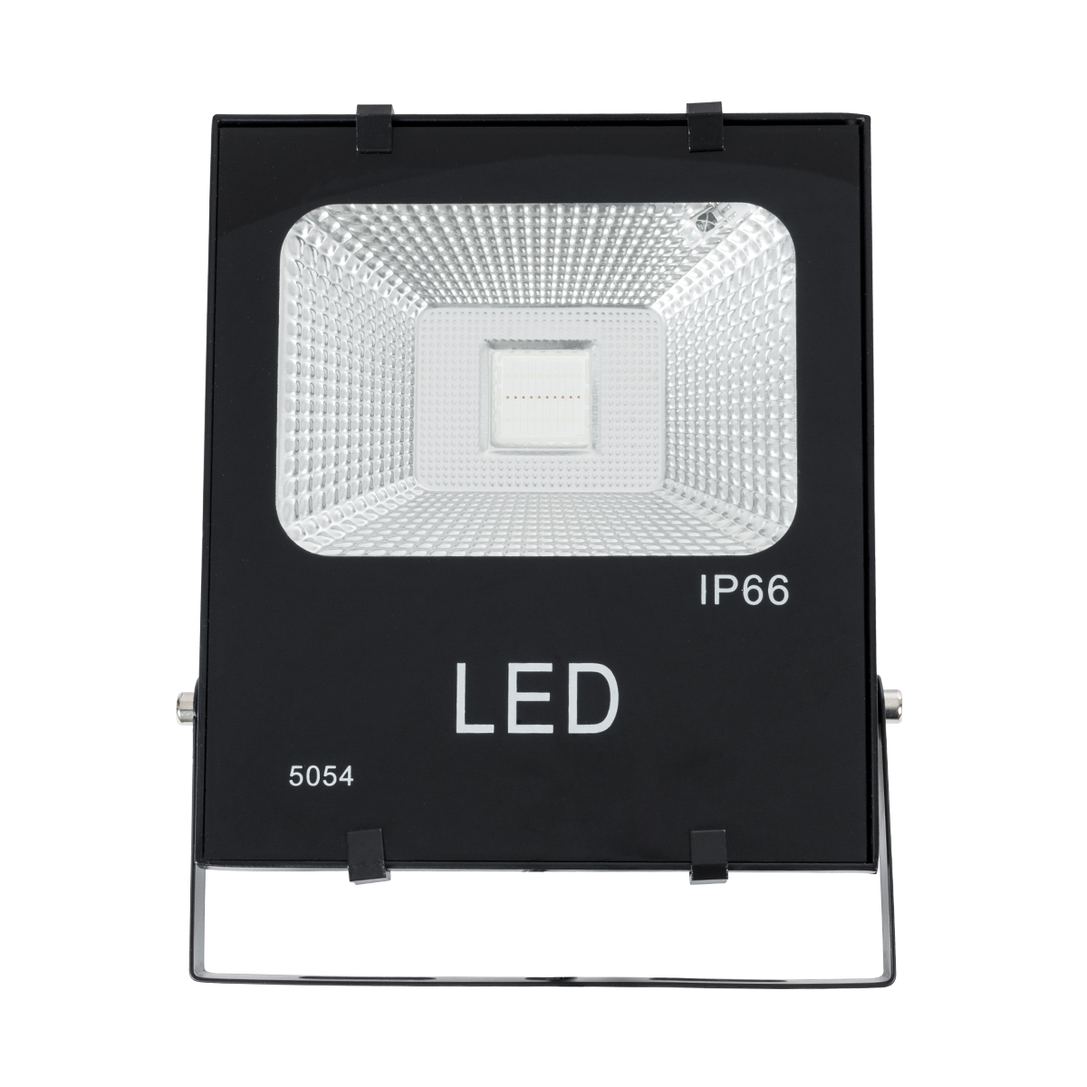 GLOBOSTAR® RGBFLOOD 75601 Προβολέας με IR Ασύρματο Χειριστήριο LED 30W 1950lm 120° AC 220-240V Αδιάβροχο IP66 Πολύχρωμο RGB Dimmable - Μαύρο Ματ - Μ17 x Π4.5 x Υ20cm - 2 Χρόνια Εγγύηση