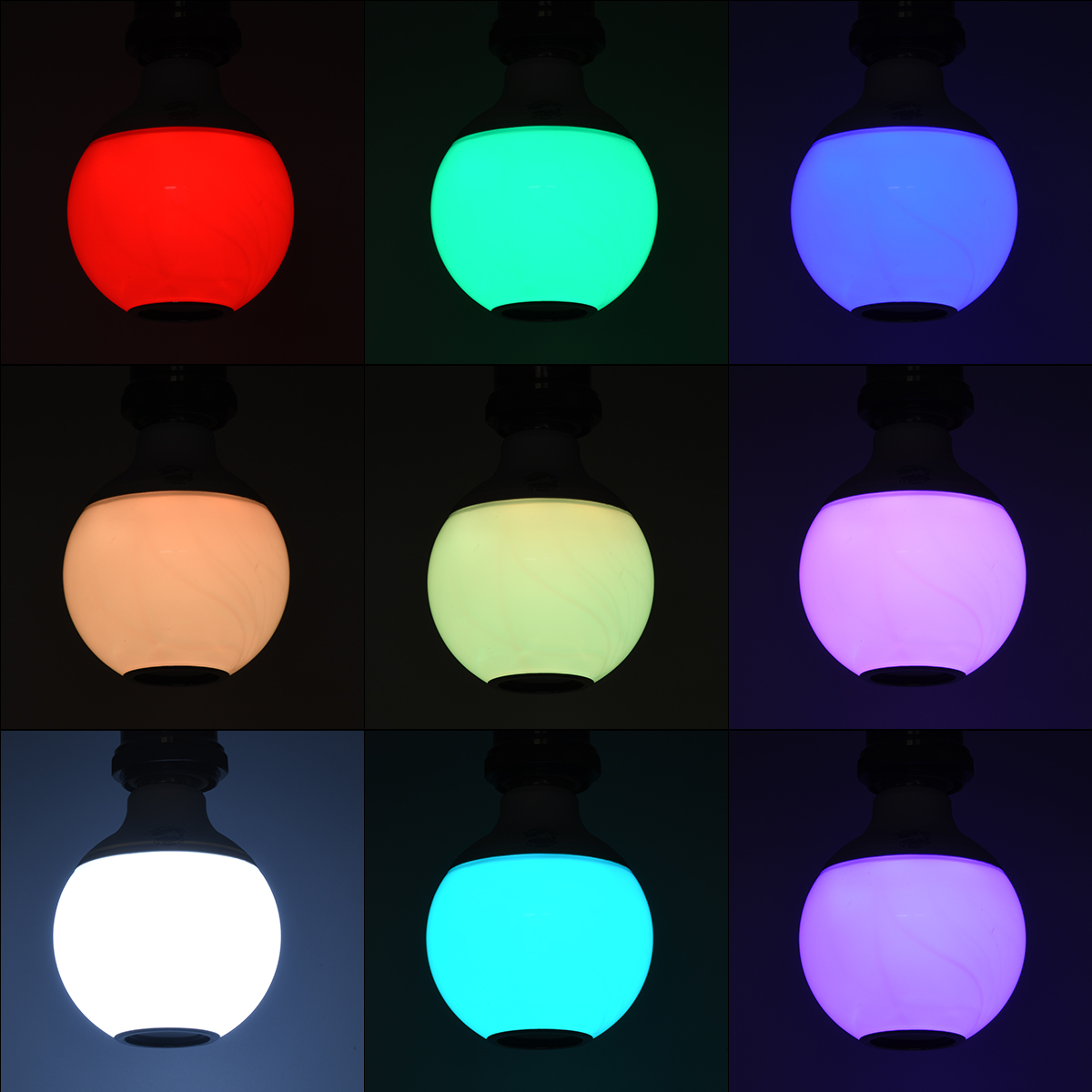GLOBOSTAR® RGBOO 76072 Λάμπα E27 G95 με IR Ασύρματο χειριστήριο & 3W Bluetooth Ηχείο LED 12W 780lm 260° AC 220-240V IP20 Πολύχρωμο RGBW Dimmable - Sanan SMD Chip - Μ13 x Π25 x Υ43cm - 2 Χρόνια Εγγύηση