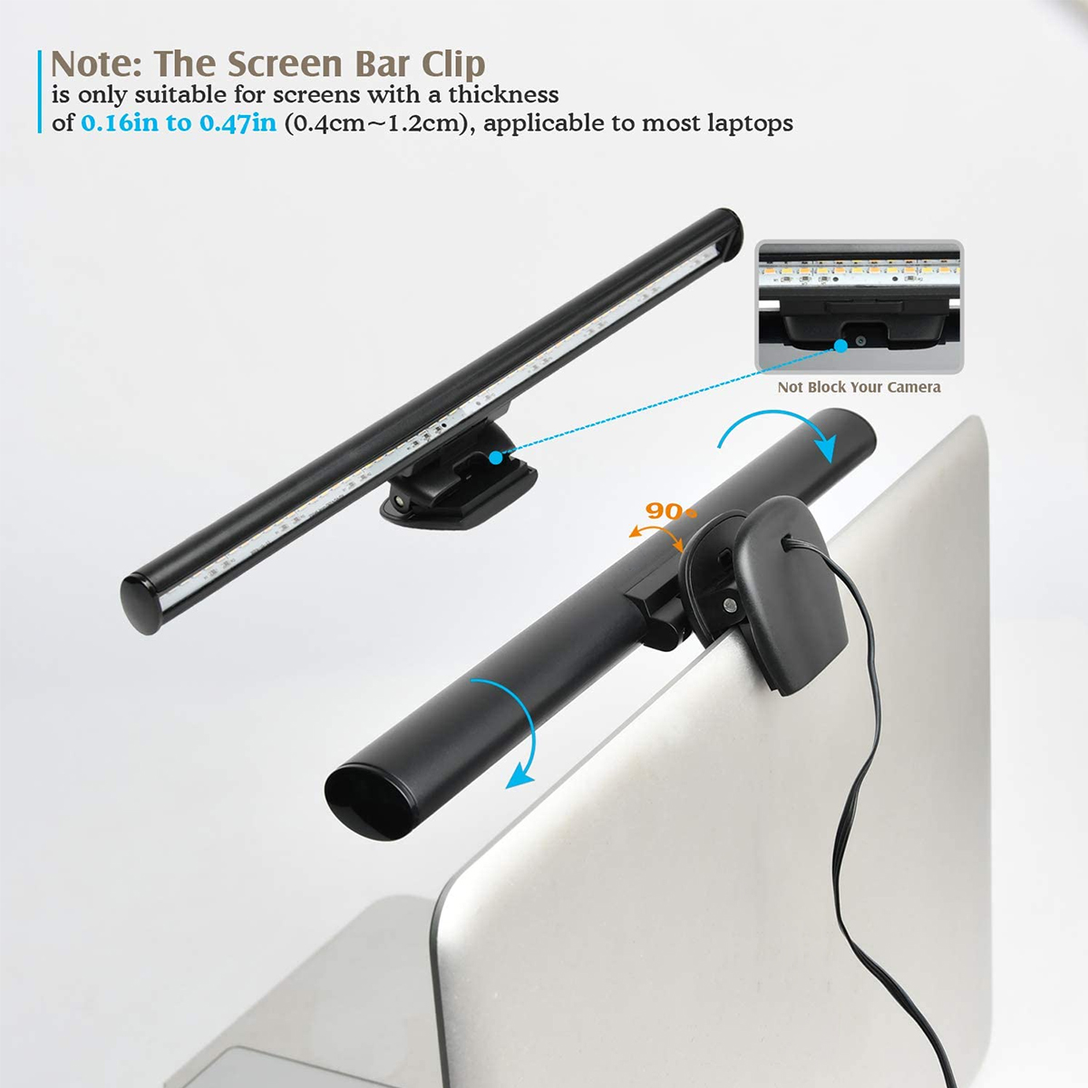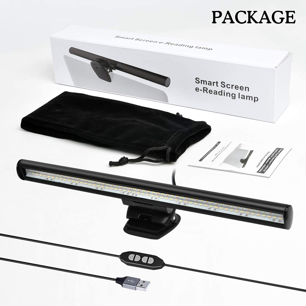 GloboStar® 76552 E-READING LIGHT Φωτιστικό Οθόνης με Χειριστήριο LED 5W 565lm 120° DC 5V IP20 CCT Θερμό Λευκό 2700K - Φυσικό Λευκό 4500K - Ψυχρό Λευκό 6000K Dimmable Μαύρο Πλαστικό Μ26 x Π4.5 x Υ4.5cm - 2 Xρόνια Εγγύηση