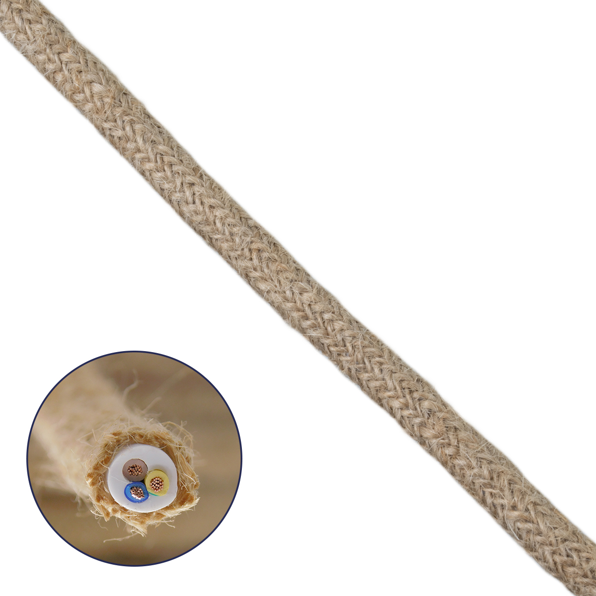 GloboStar® 77641 Εύκαμπτο Σχοινί Τριχιά Πλεκτό 1m Διαμέτρου 8mm Μπεζ με Εσωτερικό Καλώδιο Διατομής 3x0.75mm