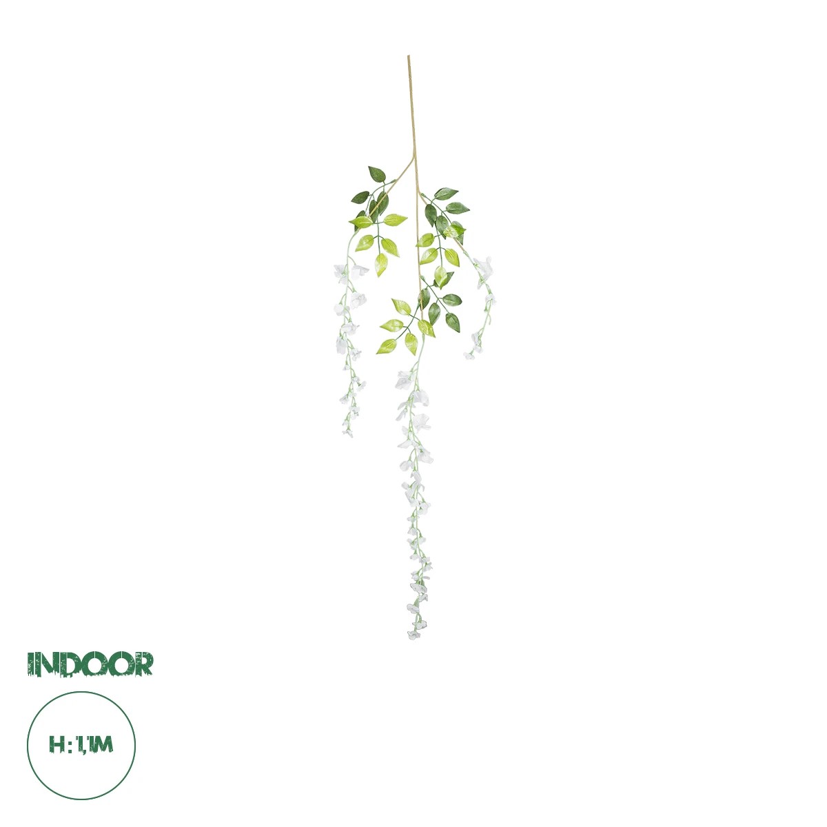 GloboStar® 78006 Τεχνητό Κρεμαστό Διακοσμητικό Φυτό με 3 X Κλαδιά Βιστέρια Λευκή - Μ10 x Π10 x Υ110cm