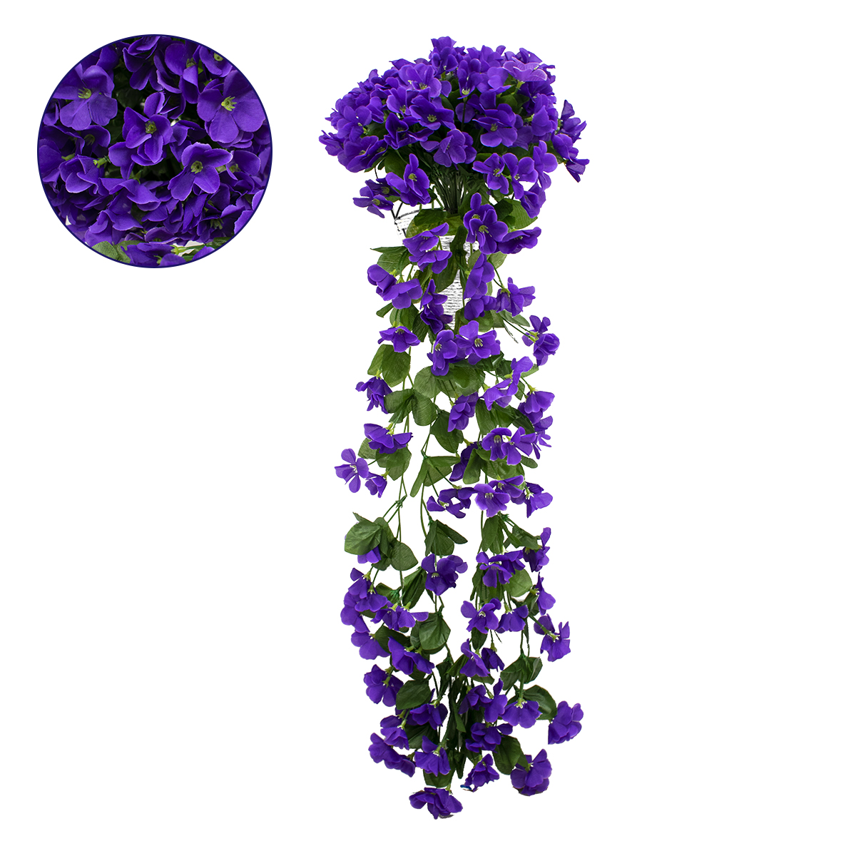 GloboStar® 78050 Τεχνητό Κρεμαστό Φυτό Διακοσμητικών Λουλουδιών με Μωβ Φλόξ M30 x Υ80 x Π30cm