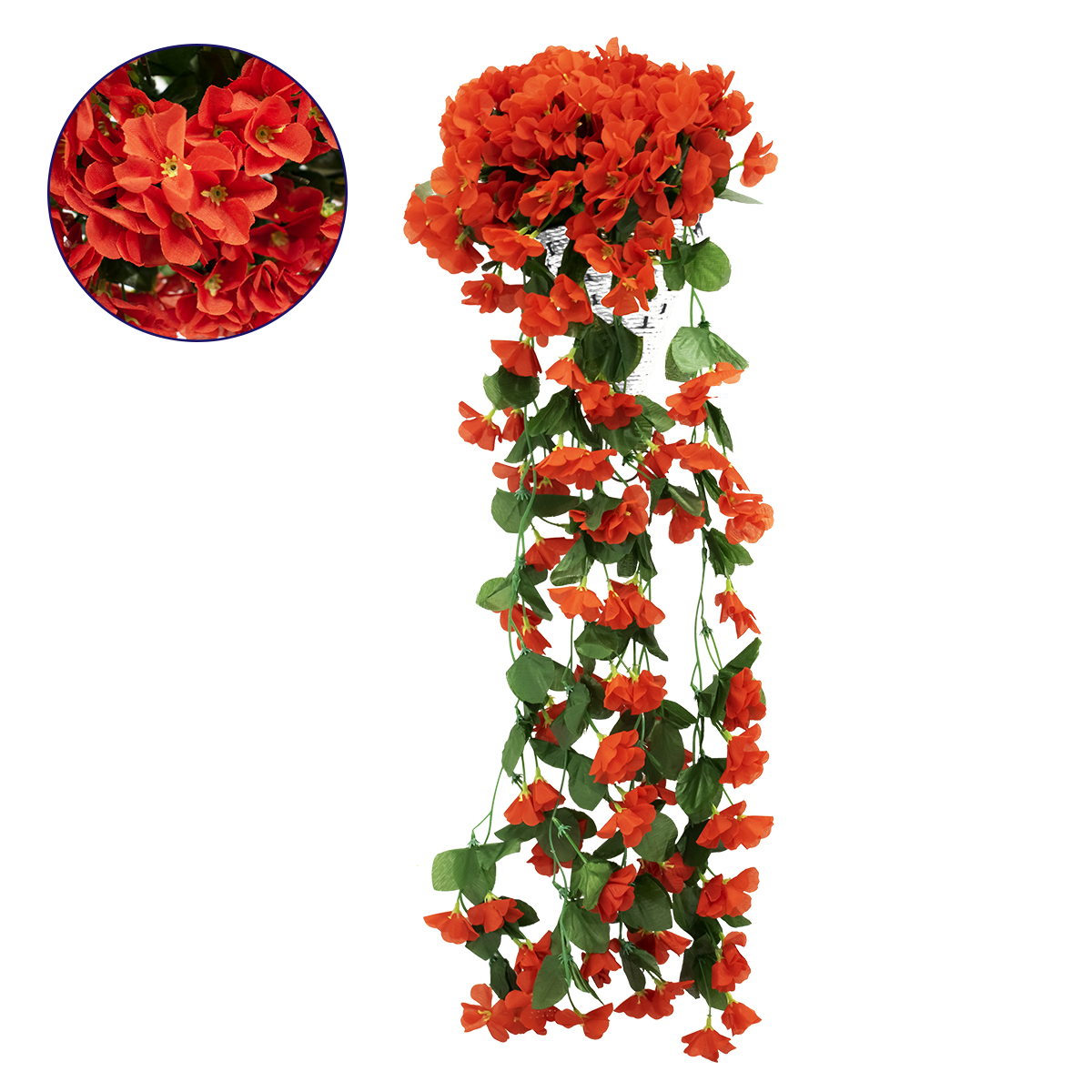 GloboStar® 78055 Τεχνητό Κρεμαστό Φυτό Διακοσμητικών Λουλουδιών με Κόκκινα Φλόξ M30 x Υ80 x Π30cm