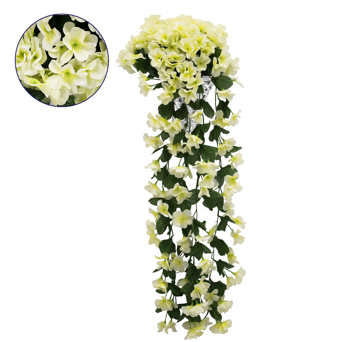 GloboStar® 78056 Τεχνητό Κρεμαστό Φυτό Διακοσμητικών Λουλουδιών με Λευκά Φλόξ M30 x Υ80 x Π30cm