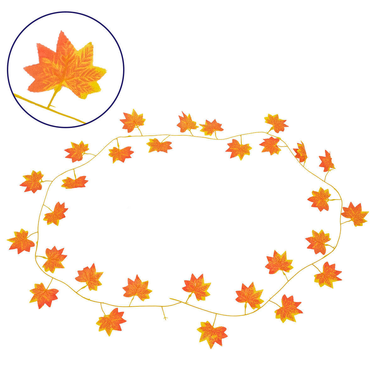 GloboStar® 78117 Τεχνητό Κρεμαστό Φυτό Διακοσμητική Γιρλάντα Λουλουδιών με 30 Πορτοκαλί Φύλλα Σφενδάμης M20 x Π20 x Υ220cm