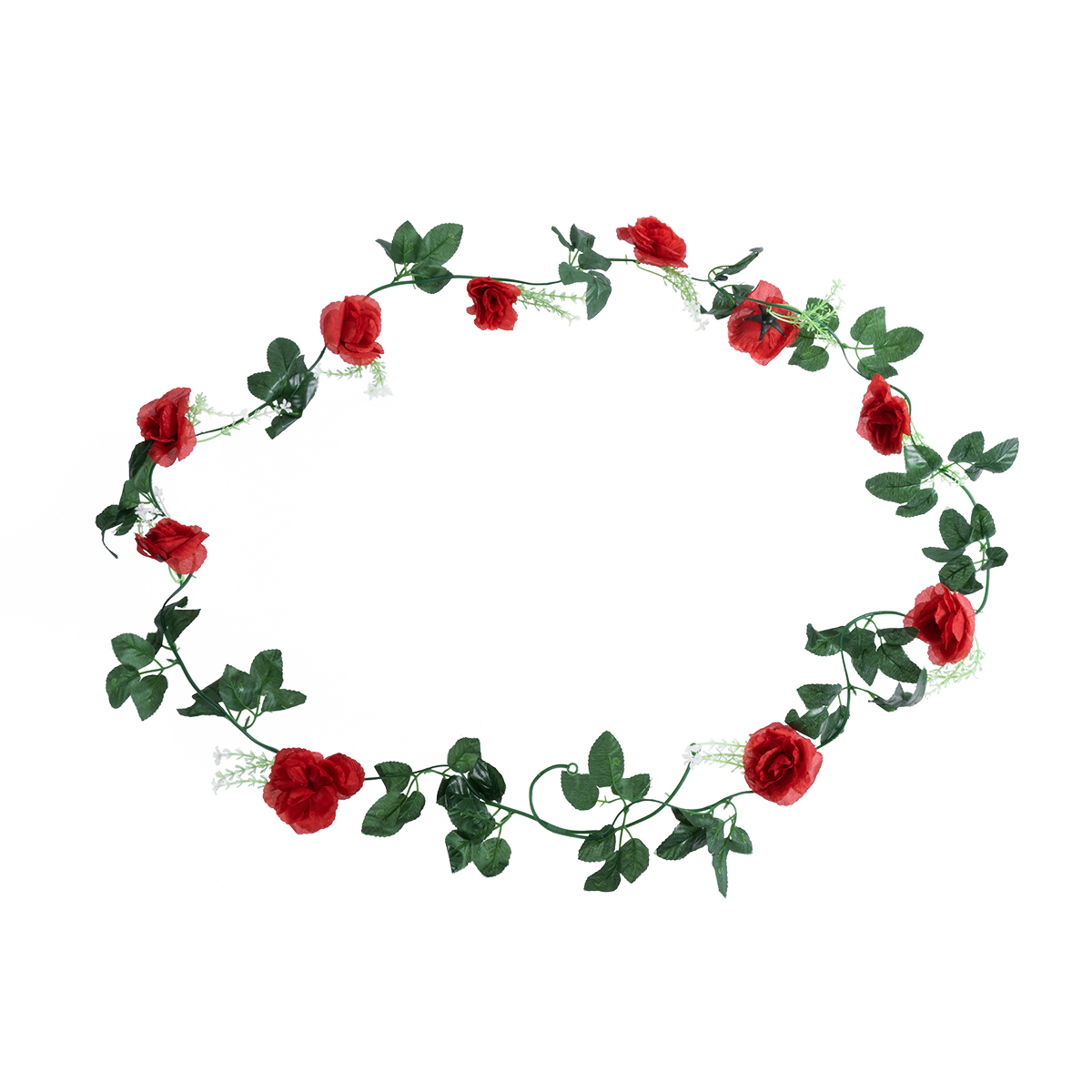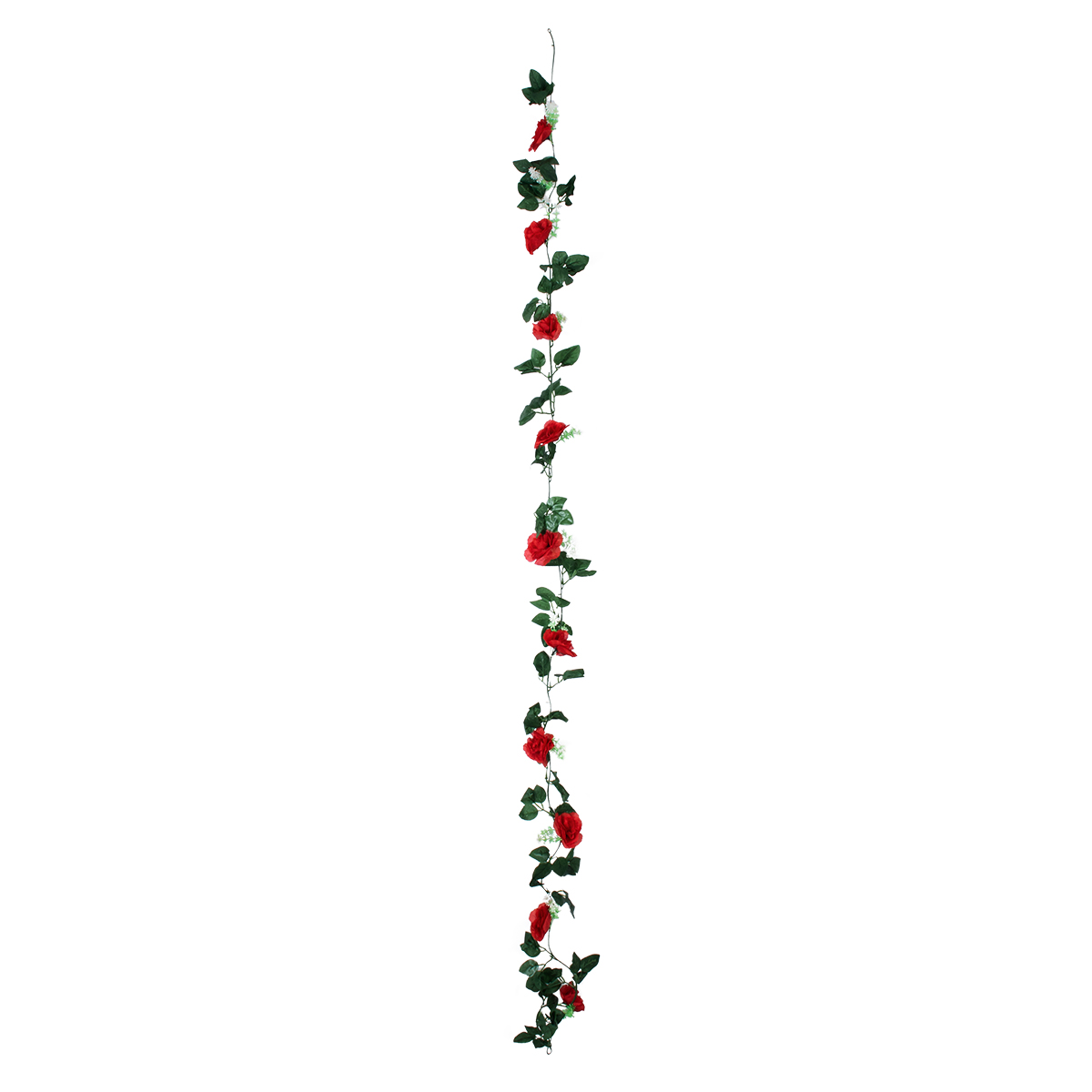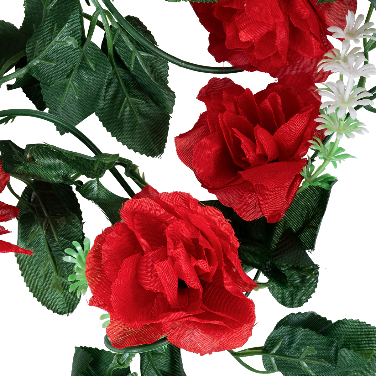 GloboStar® 78129 Τεχνητό Κρεμαστό Φυτό Διακοσμητική Γιρλάντα Λουλουδιών με 10 Κόκκινα Τριαντάφυλλα & Πράσινο Φύλλωμα M20 x Υ220 x Π20cm