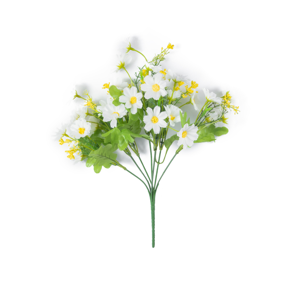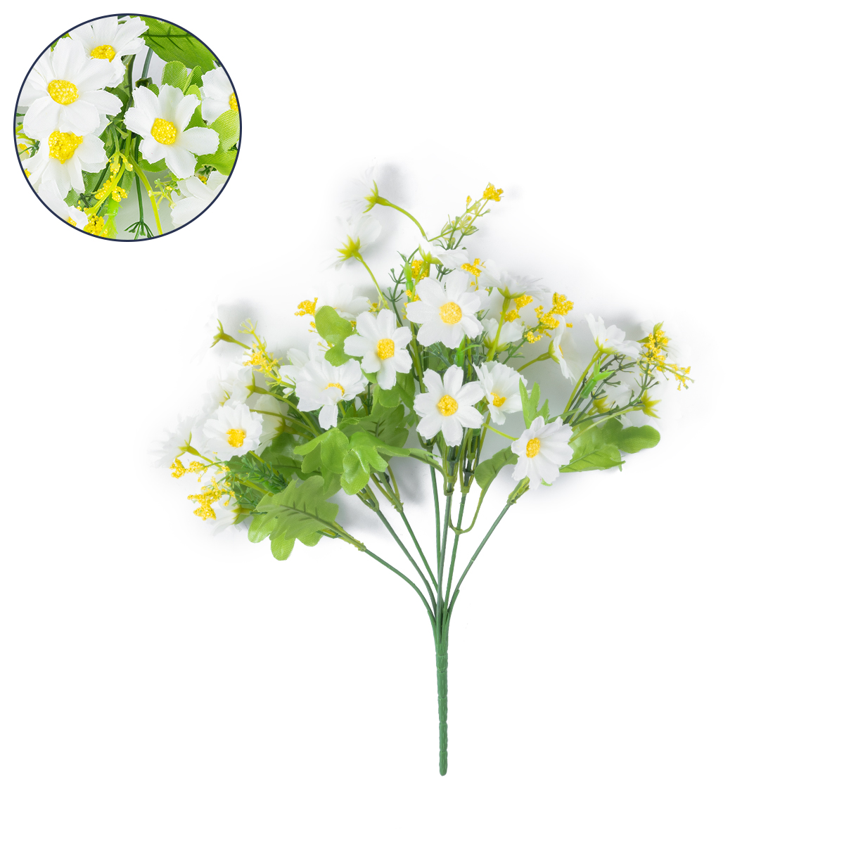 GloboStar® 78200 Τεχνητό Φυτό Μπουκέτο Διακοσμητικών Λουλουδιών με 10 Λευκές και Κίτρινες Μαργαρίτες Μ27 x Π27 x Υ33cm