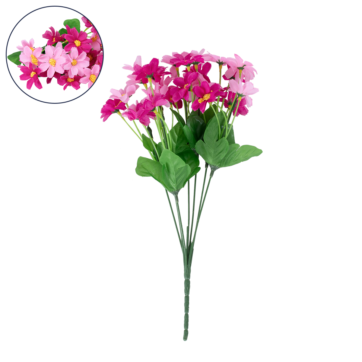 GloboStar® 78206 Τεχνητό Φυτό Μπουκέτο Διακοσμητικών Λουλουδιών με 7 Φούξια Μαργαρίτες M20 x Υ35 x Π20cm