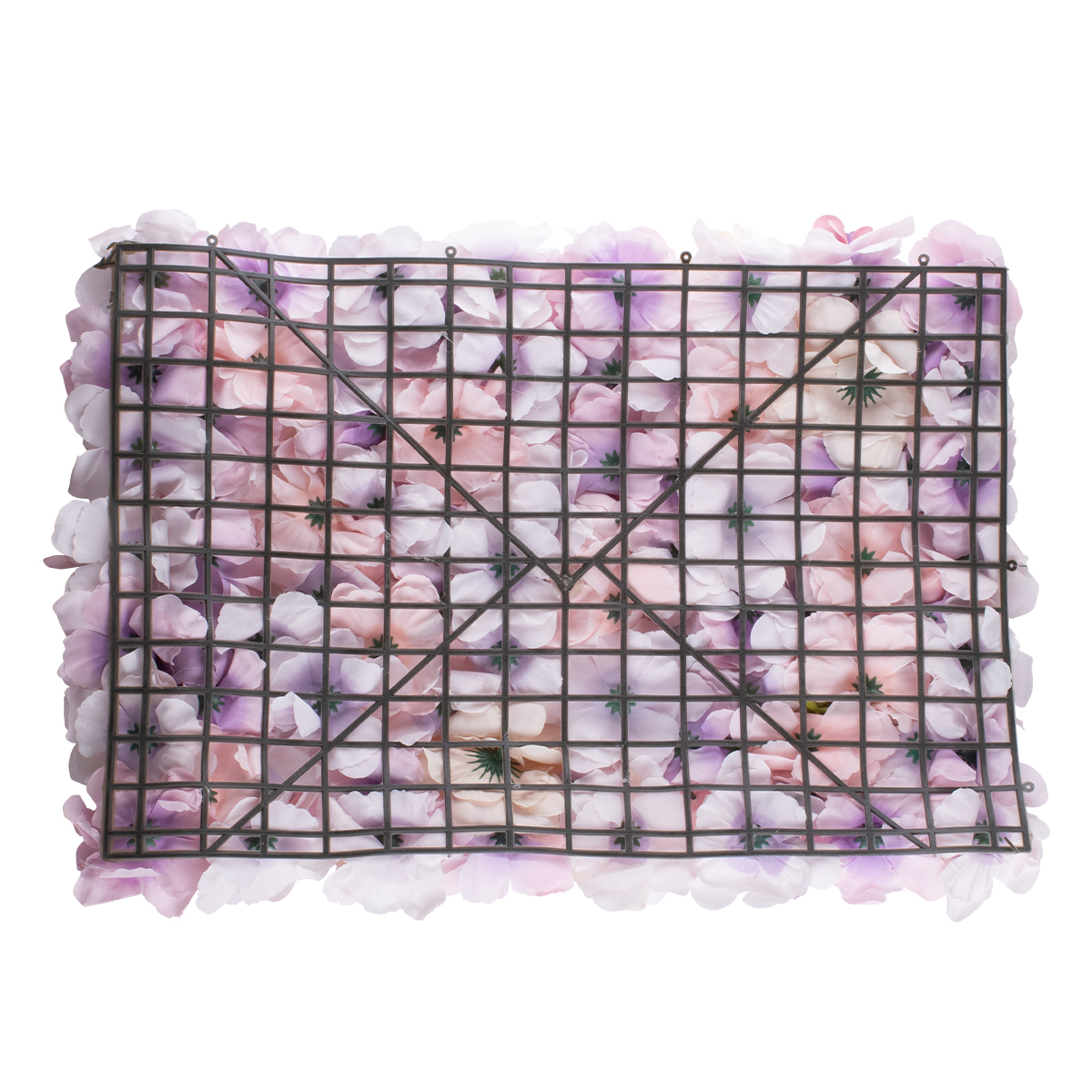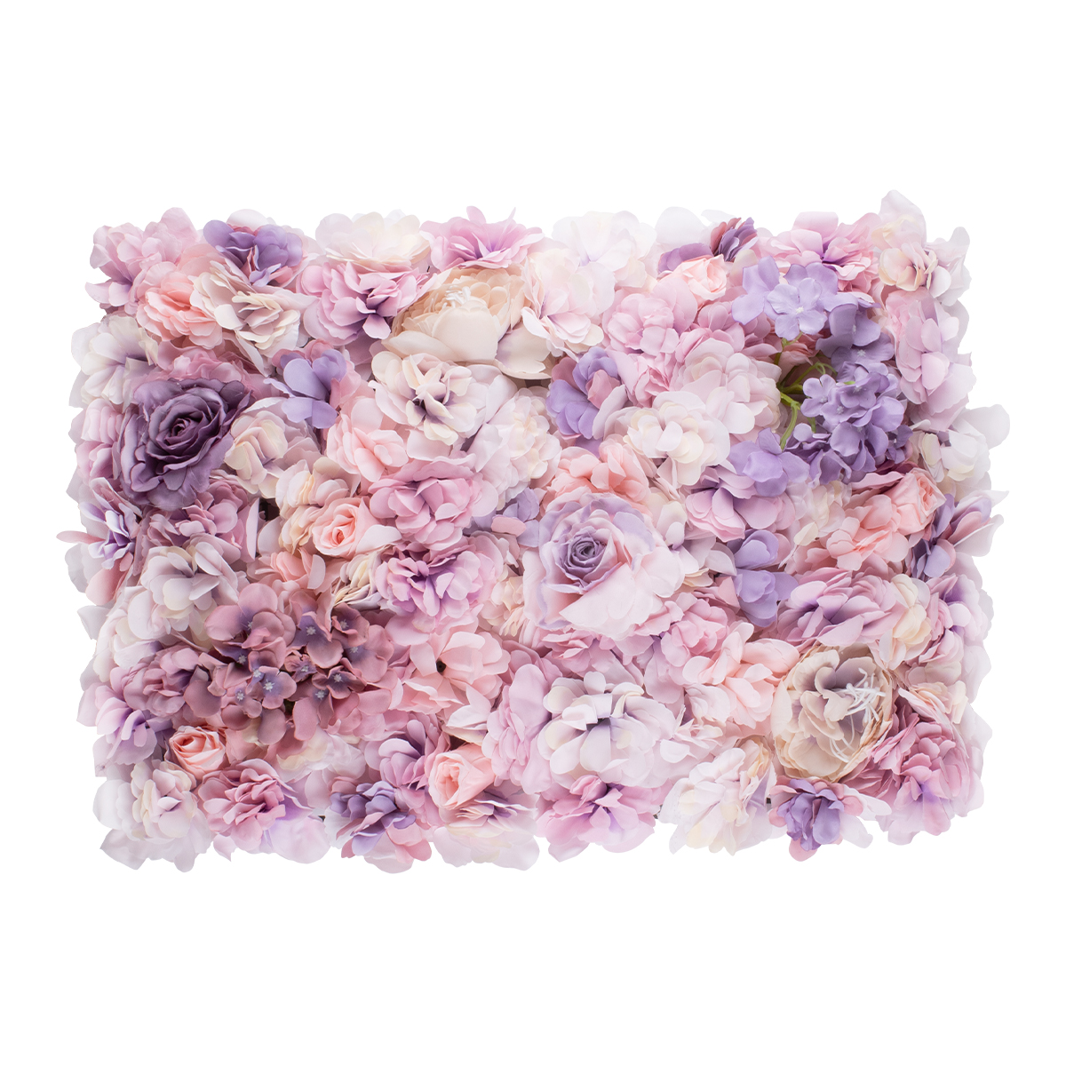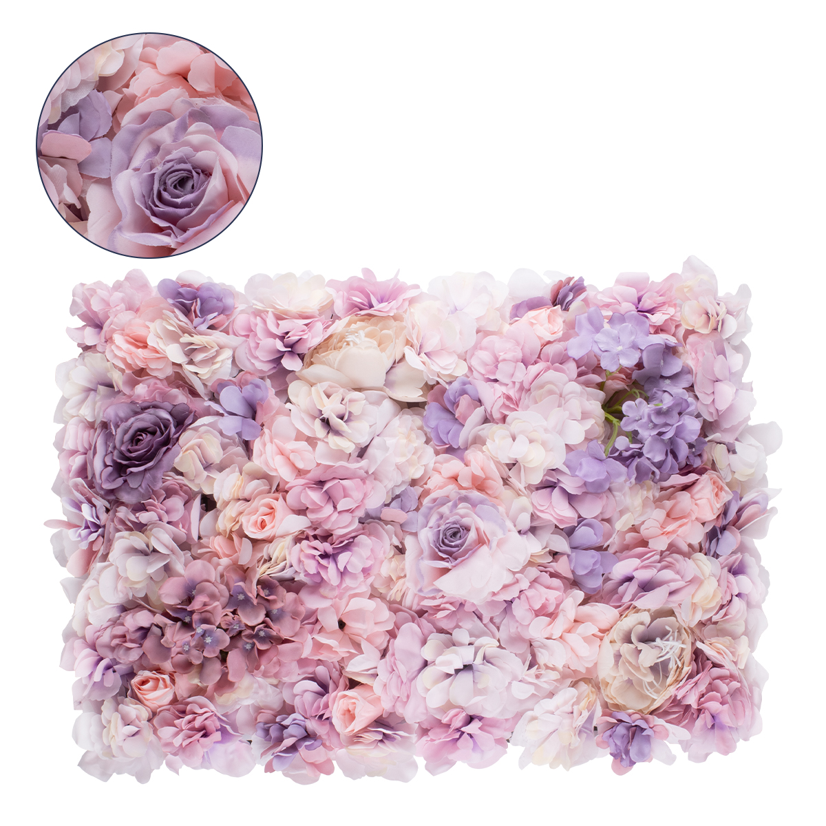 GloboStar® 78331 Artificial - Συνθετικό Τεχνητό Διακοσμητικό Πάνελ Λουλουδιών - Κάθετος Κήπος Τριαντάφυλλο - Ορτανσία - Βιολέτα - Ροζ - Λιλά Μ60 x Υ40 x Π7cm