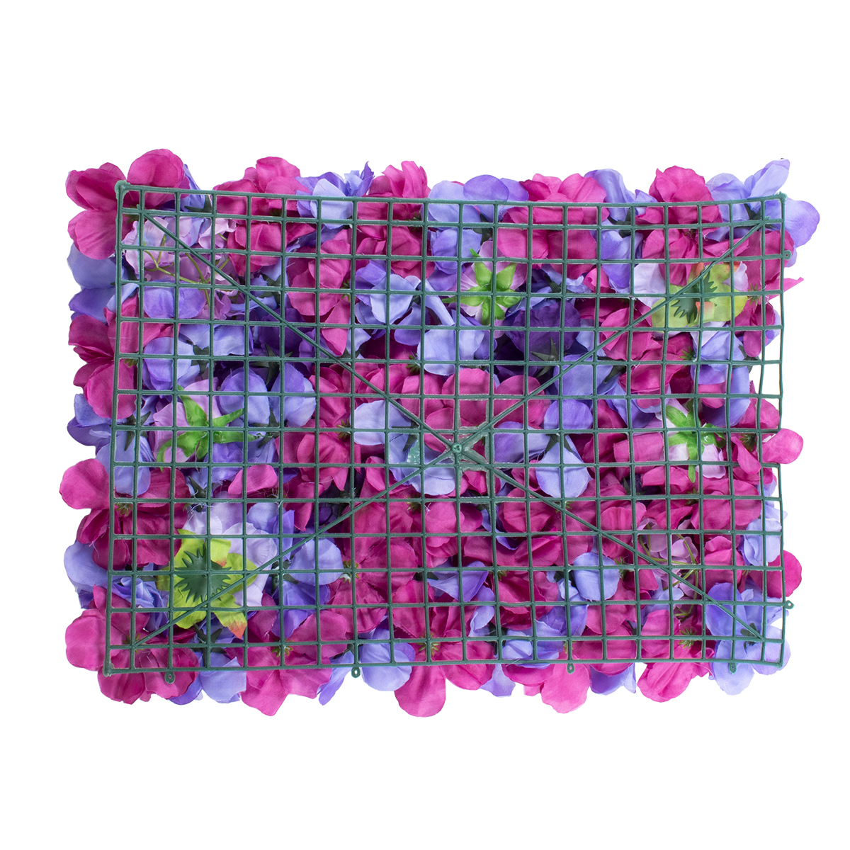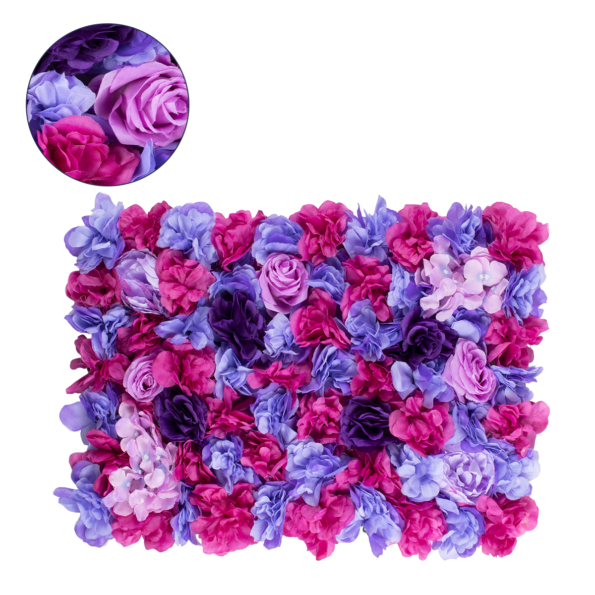 GloboStar® 78332 Artificial - Συνθετικό Τεχνητό Διακοσμητικό Πάνελ Λουλουδιών - Κάθετος Κήπος Τριαντάφυλλο - Ορτανσία - Βιολέτα - Φουξια - Μωβ - Γαλάζιο Μ60 x Υ40 x Π7cm