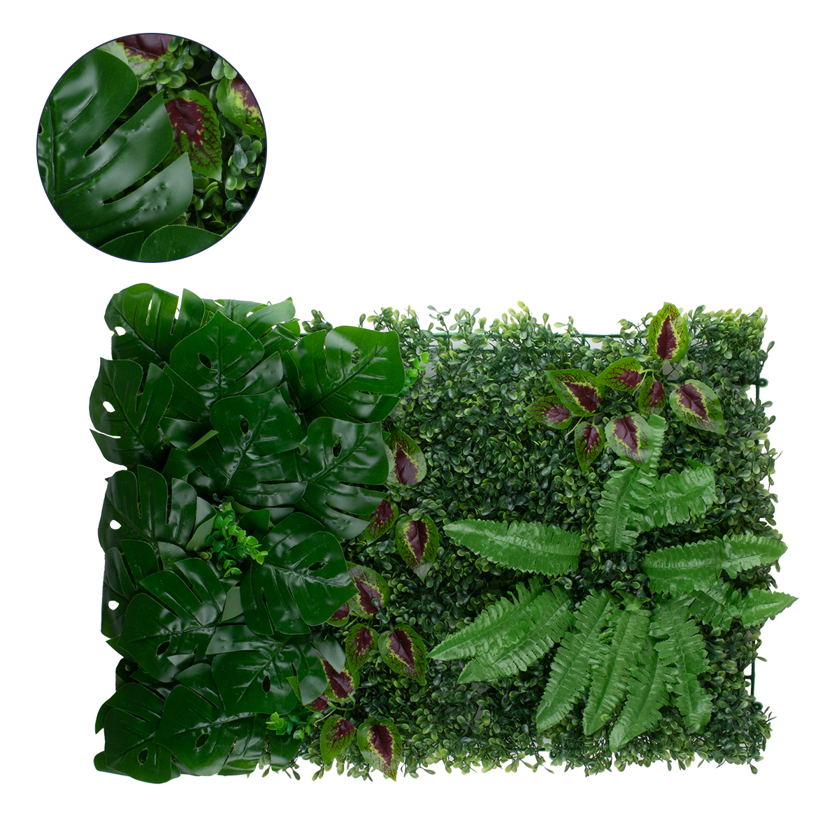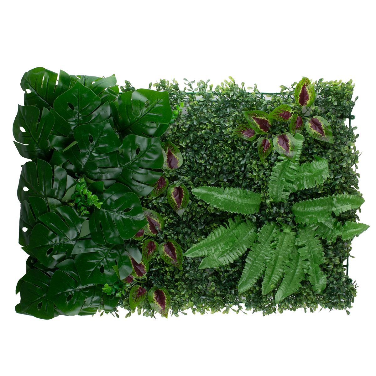 GloboStar® 78428 Artificial - Συνθετικό Τεχνητό Διακοσμητικό Πάνελ Φυλλωσιάς - Κάθετος Κήπος Πυξάρι - Φτέρη - Μονστέρα - Αμάραντος - Πράσινο Μ60 x Υ40 x Π8cm