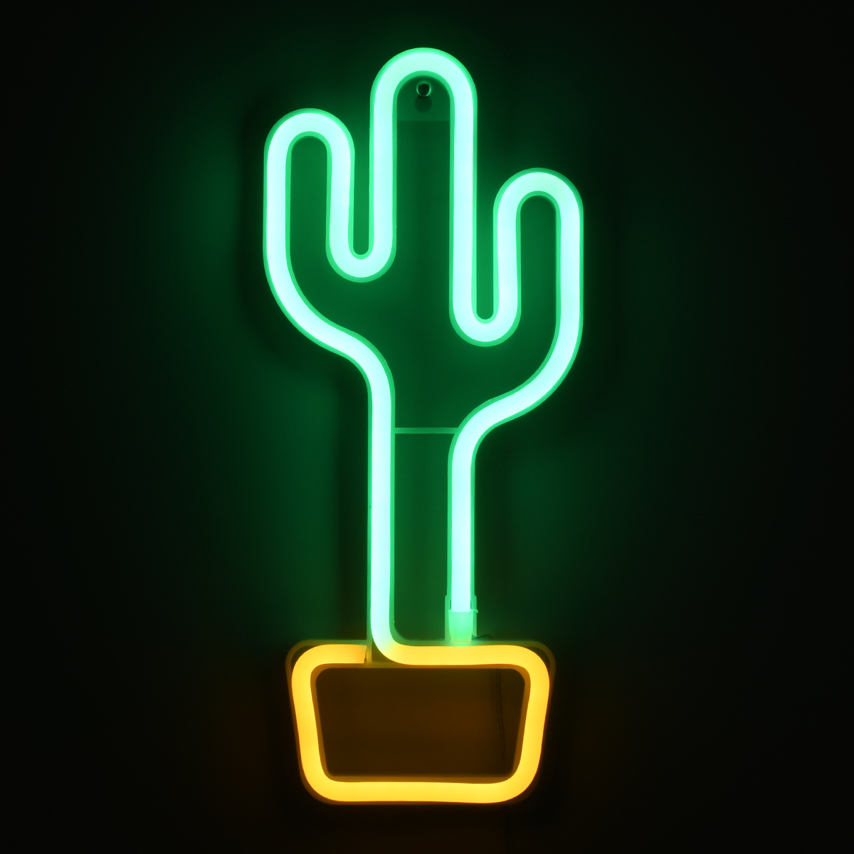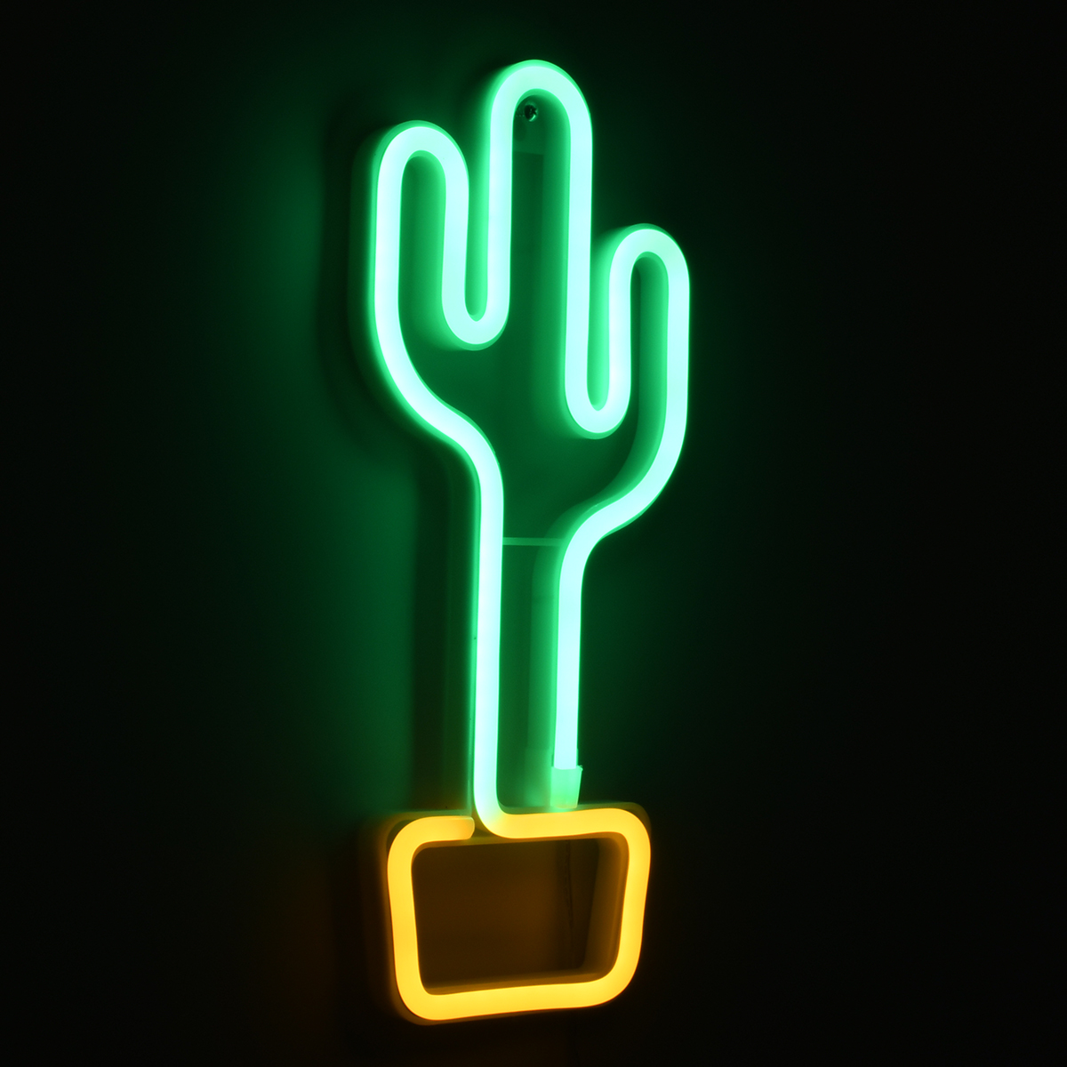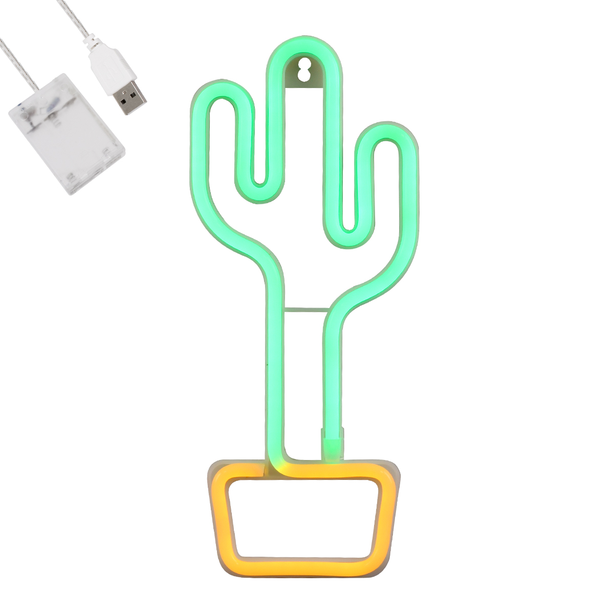 GloboStar® 78574 Φωτιστικό Ταμπέλα Φωτεινή Επιγραφή NEON LED Σήμανσης CACTUS 5W με Καλώδιο Τροφοδοσίας USB - Μπαταρίας 3xAAA (Δεν Περιλαμβάνονται) - Πράσινο - Κίτρινο