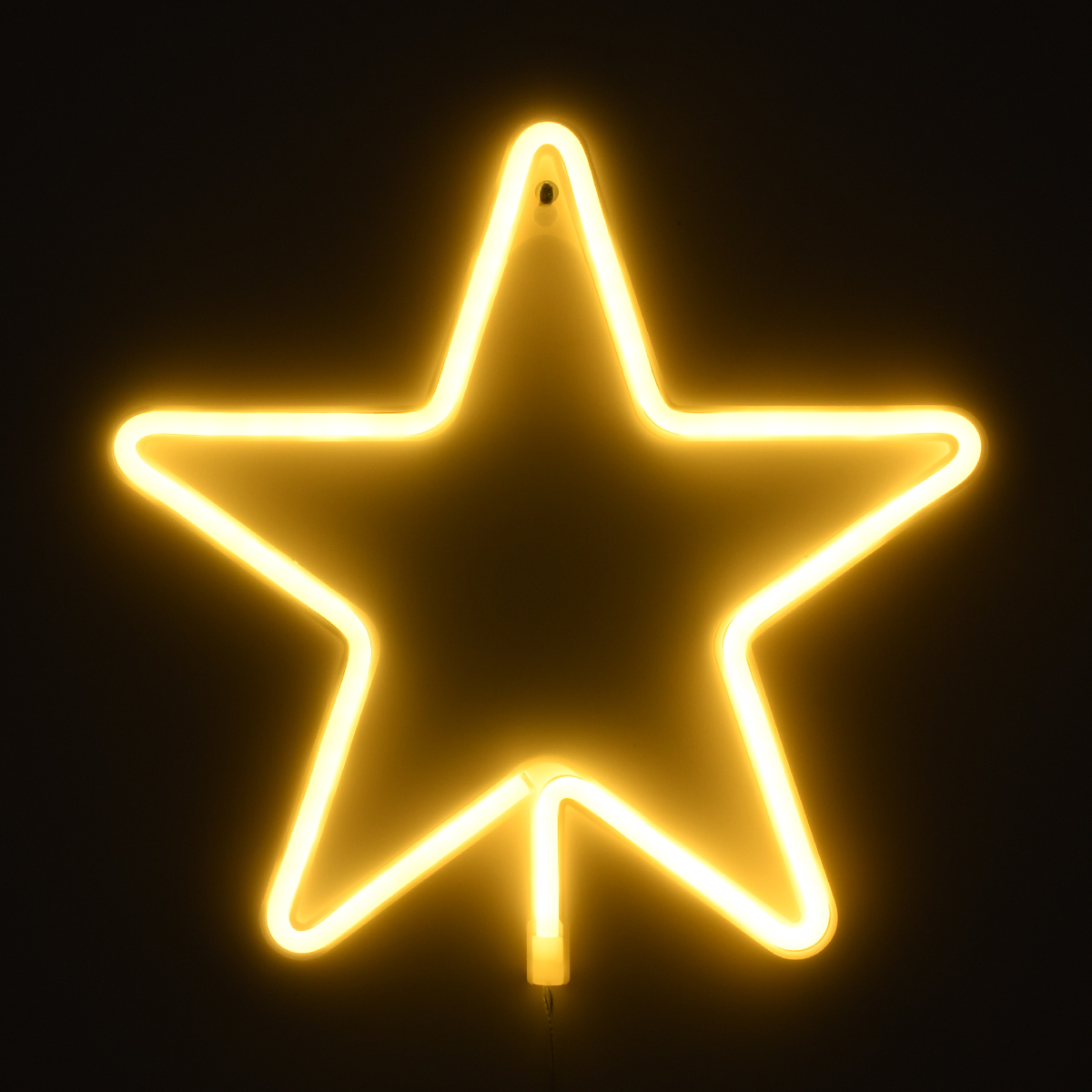 GloboStar® 78585 Φωτιστικό Ταμπέλα Φωτεινή Επιγραφή NEON LED Σήμανσης STAR 5W με Καλώδιο Τροφοδοσίας USB - Μπαταρίας 3xAAA (Δεν Περιλαμβάνονται) - Θερμό Λευκό 2700K