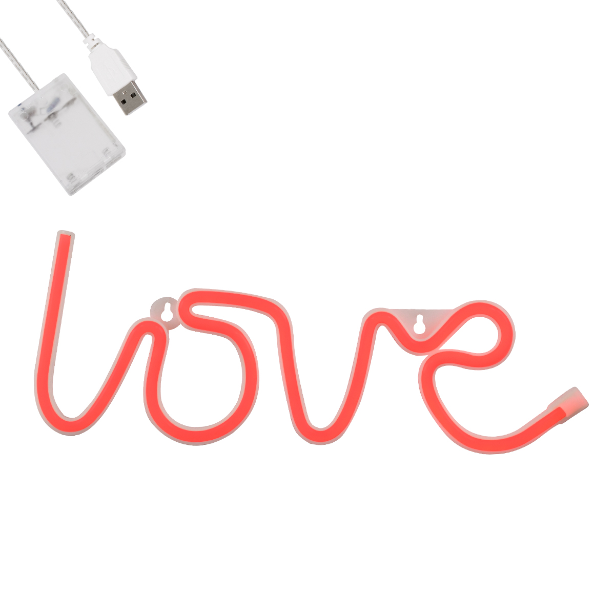 GloboStar® 78587 Φωτιστικό Ταμπέλα Φωτεινή Επιγραφή NEON LED Σήμανσης LOVE 5W με Καλώδιο Τροφοδοσίας USB - Μπαταρίας 3xAAA (Δεν Περιλαμβάνονται) - Κόκκινο