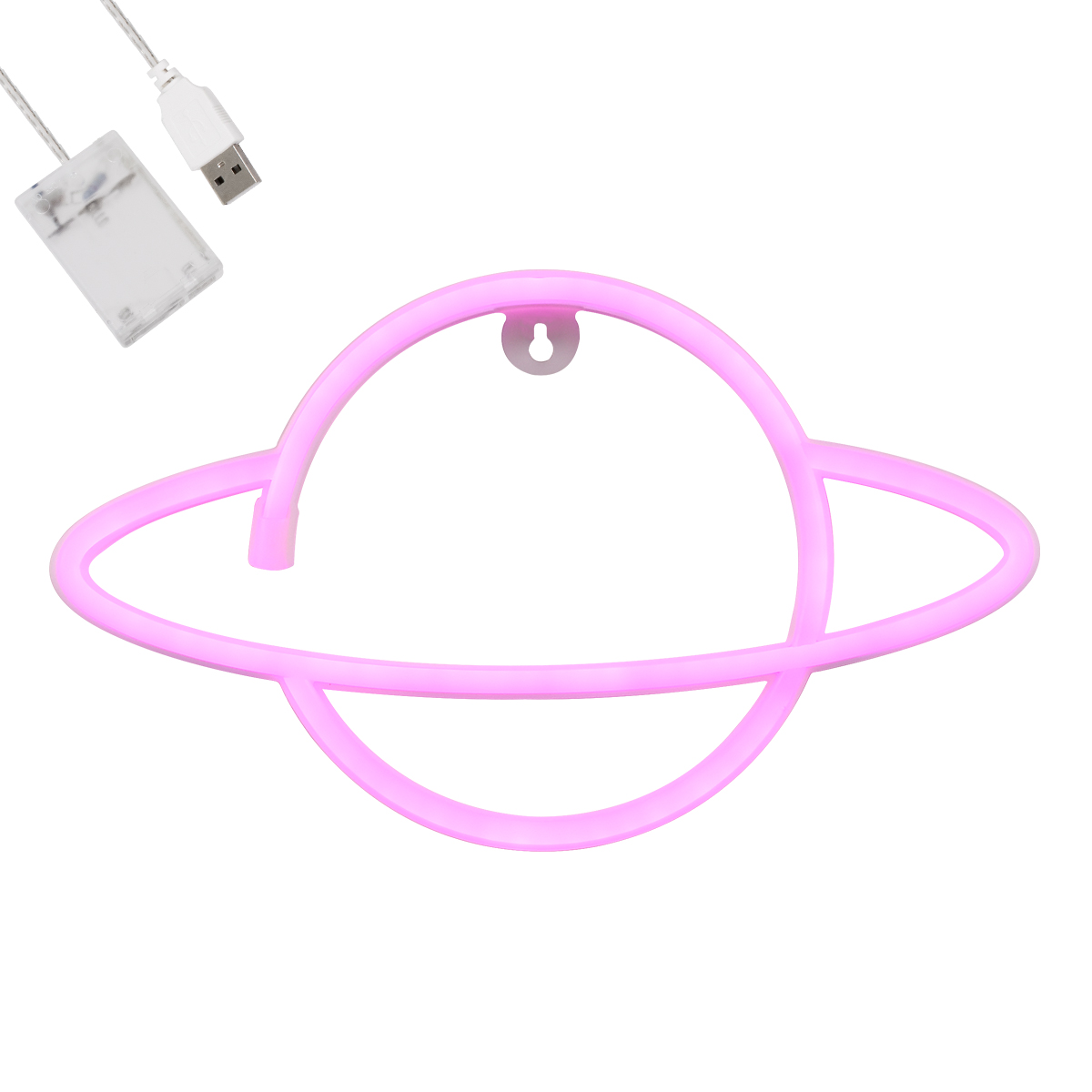 GloboStar® 78588 Φωτιστικό Ταμπέλα Φωτεινή Επιγραφή NEON LED Σήμανσης PLANET SATURN 5W με Καλώδιο Τροφοδοσίας USB - Μπαταρίας 3xAAA (Δεν Περιλαμβάνονται) - Ροζ