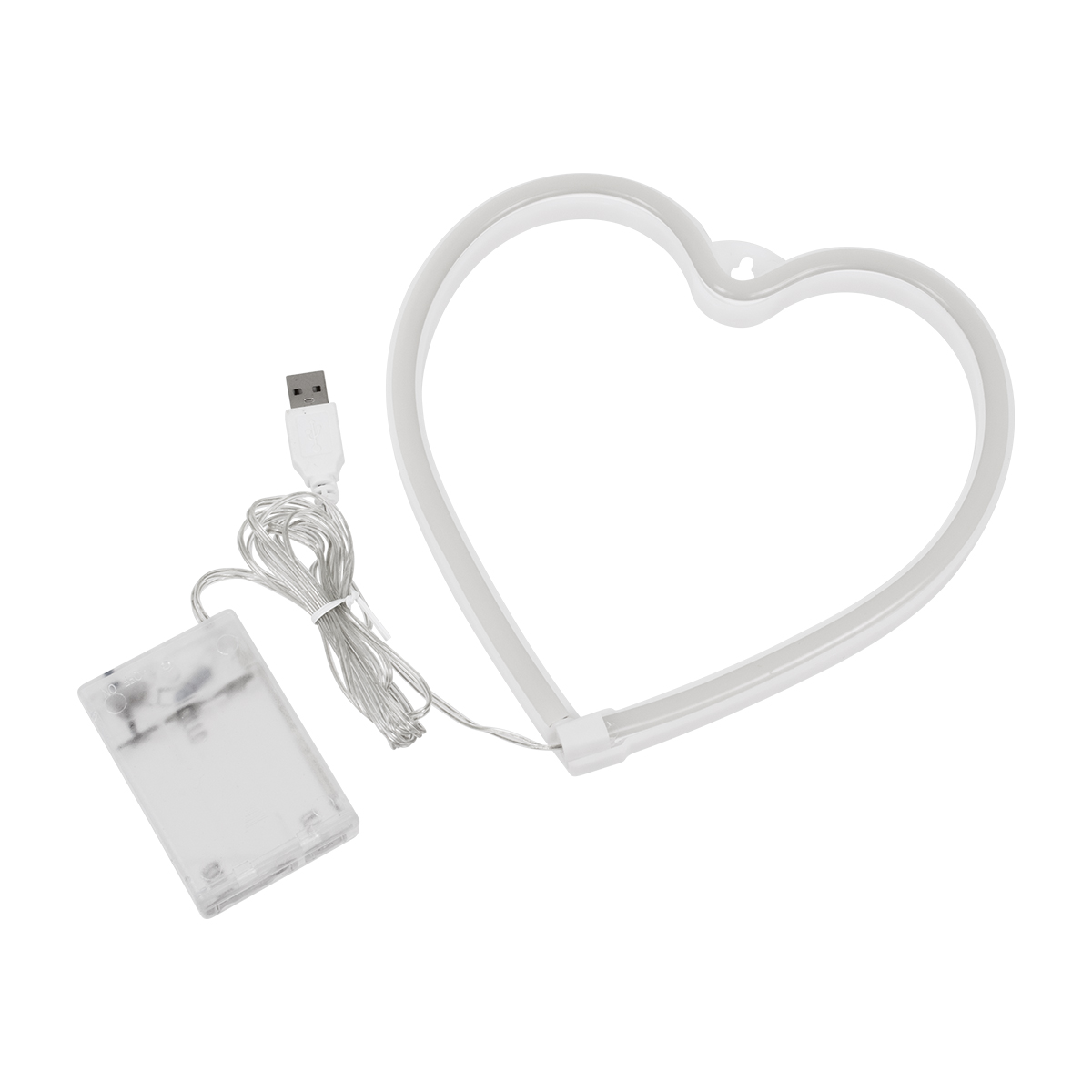 GloboStar® 78592 Φωτιστικό Ταμπέλα Φωτεινή Επιγραφή NEON LED Σήμανσης HEART 5W με Καλώδιο Τροφοδοσίας USB - Μπαταρίας 3xAAA (Δεν Περιλαμβάνονται) - Ροζ