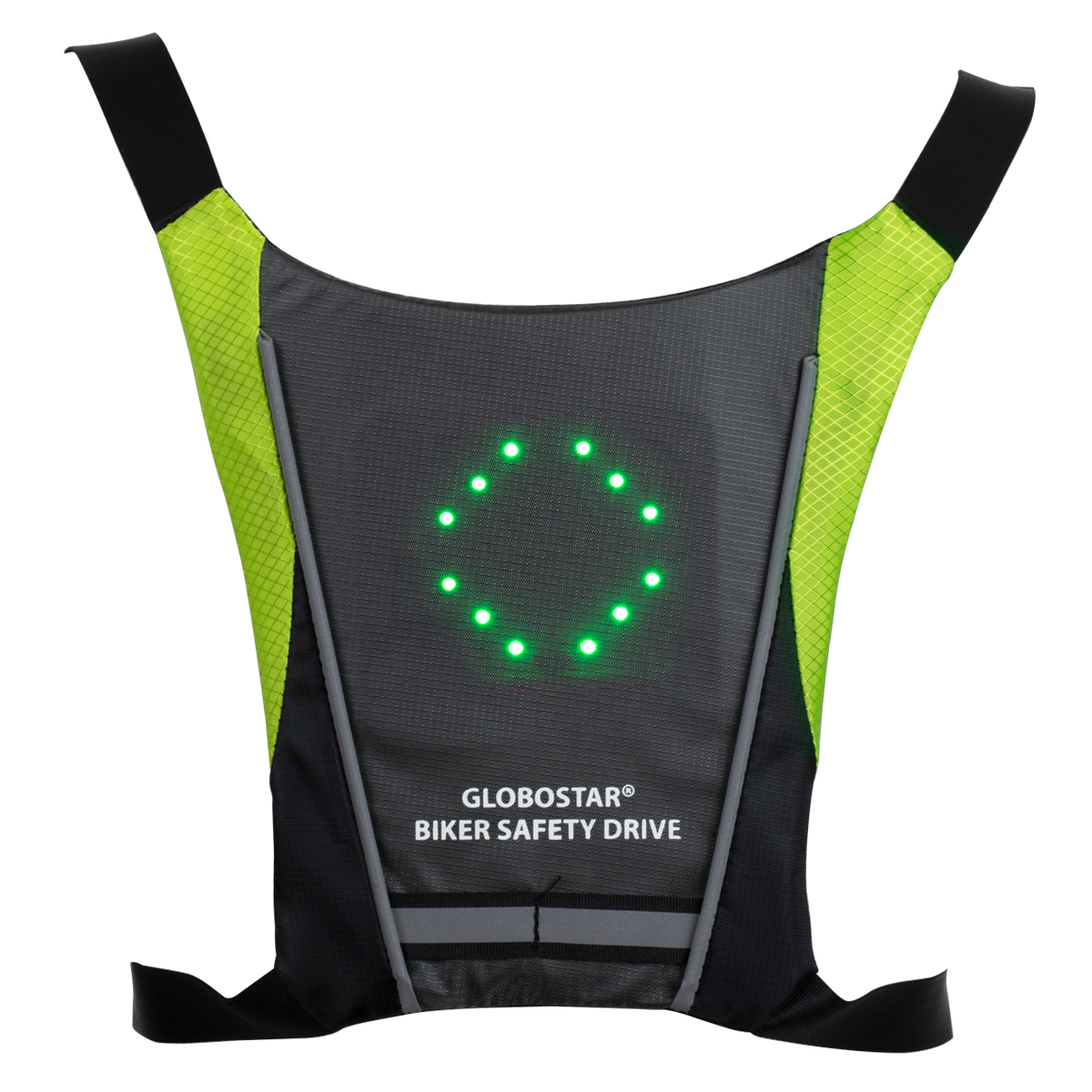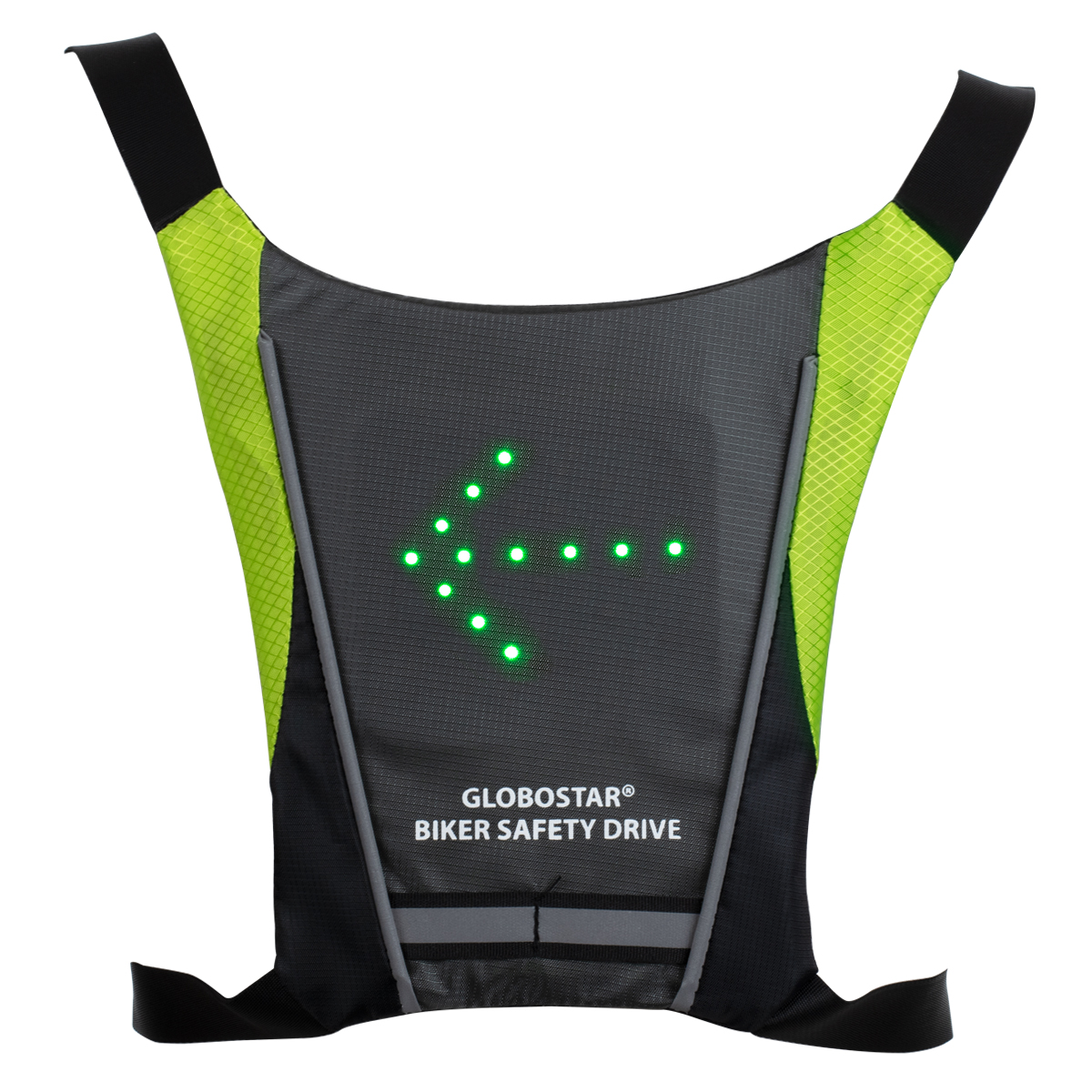 GloboStar® 79070 Γιλέκο Ασφαλείας Φωσφοριζέ Αντανακλαστικό για Ποδηλάτες & Runners με Φωτεινή Σήμανση LED - Ενσωματωμένη Μπαταρία 650mAh DC 5V Επαναφορτιζόμενο με Καλώδιο Τροφοδοσίας USB & Ασύρματο Χειριστήριο - Μαύρο & Λαχανί Φωσφοριζέ Αδιάβροχο IP65