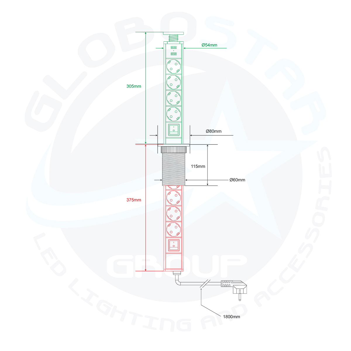 Ύψος πάνω απο τη Βάση: 305mm (Τοποθετημένο)