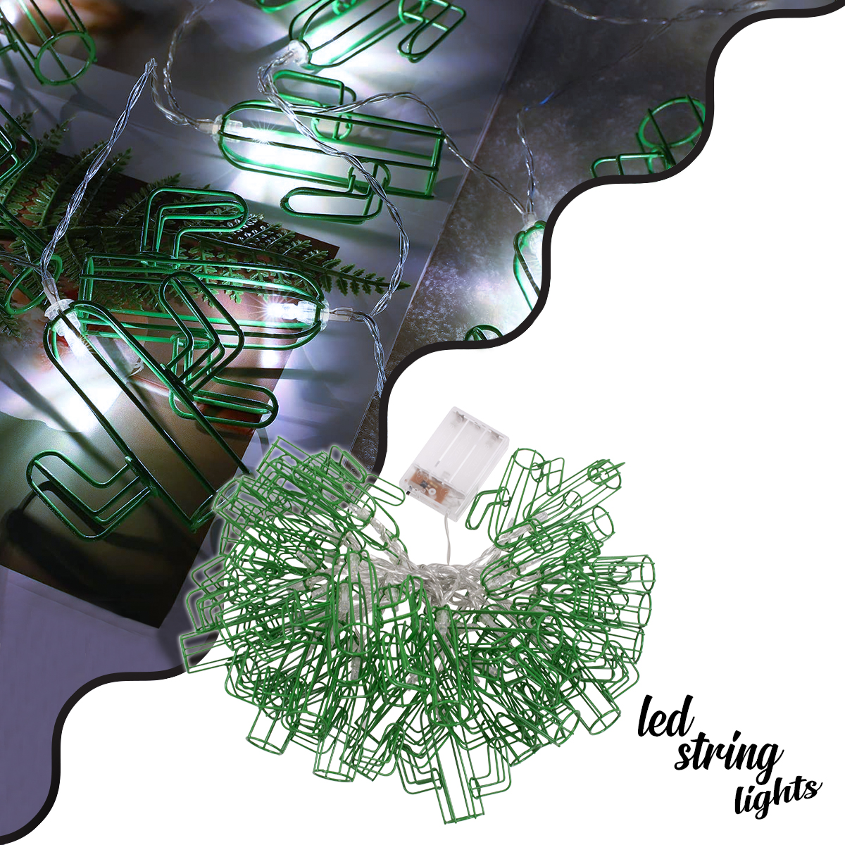 79802 Διακοσμητική Γιρλάντα Green Cactus 6 Μέτρα με Διακόπτη On/Off - 40 LED 4W με Μπαταρίες 3xAA & Διάφανο Καλώδιο IP20 Ψυχρό Λευκό 6000K Μ6m