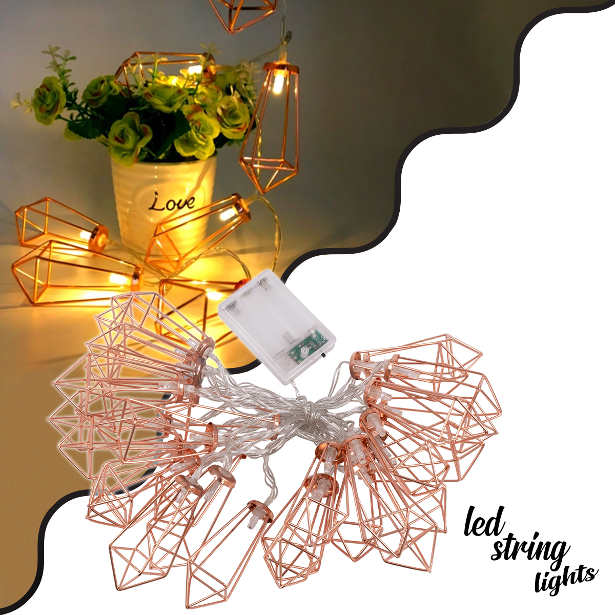 79805 Διακοσμητική Γιρλάντα Bronze Cone 4 Μέτρα με Διακόπτη On/Off - 30 LED 3W με Μπαταρίες 3xAA & Διάφανο Καλώδιο IP20 Θερμό Λευκό 2700K Μ4m