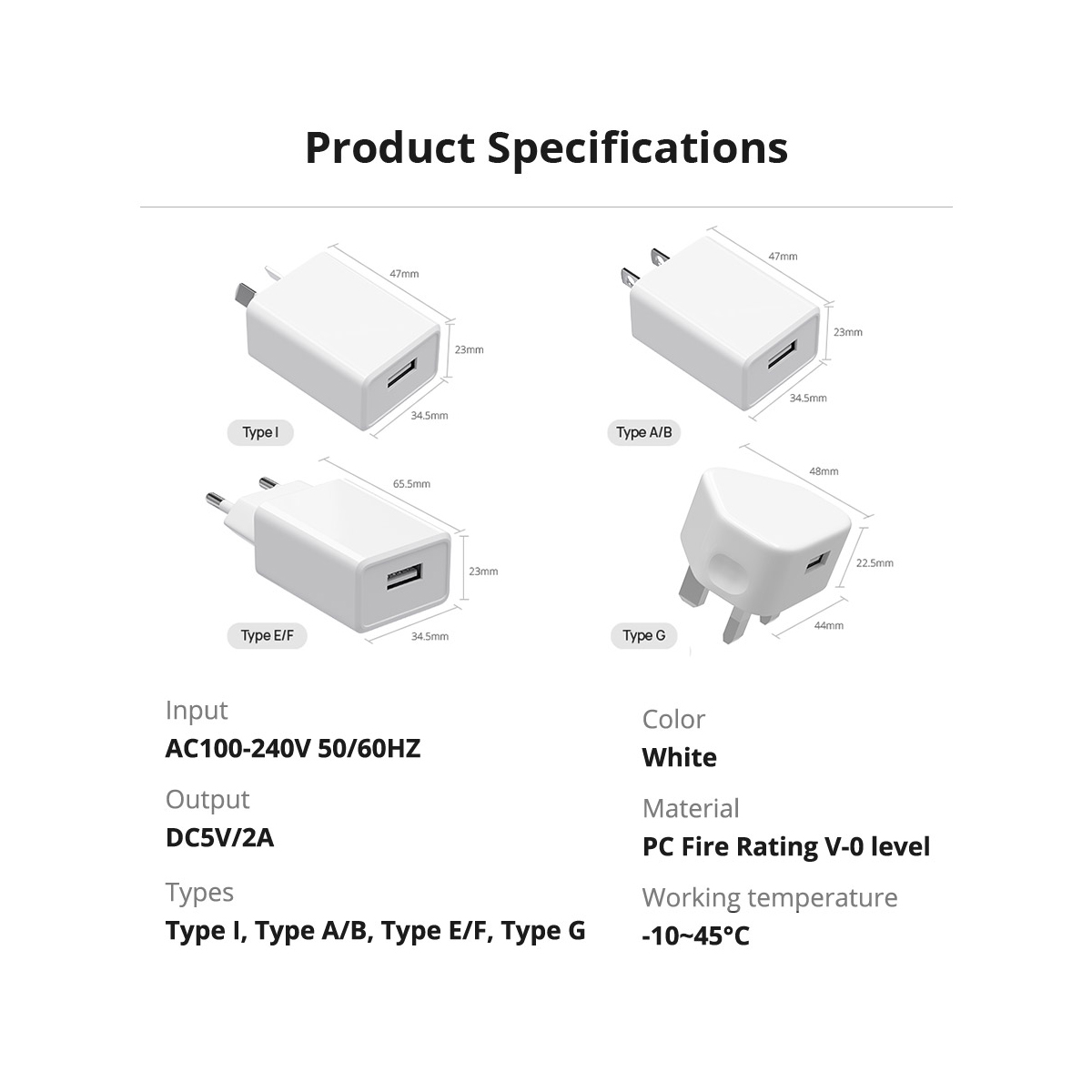 GloboStar® 80108 SONOFF Power DC 5V/2A AC 100-240V Type E/F Adapter for Smart Lighting & Home Security Gateway Support ZB Bridge - RF BridgeR2 433 - ZB Bridge Pro