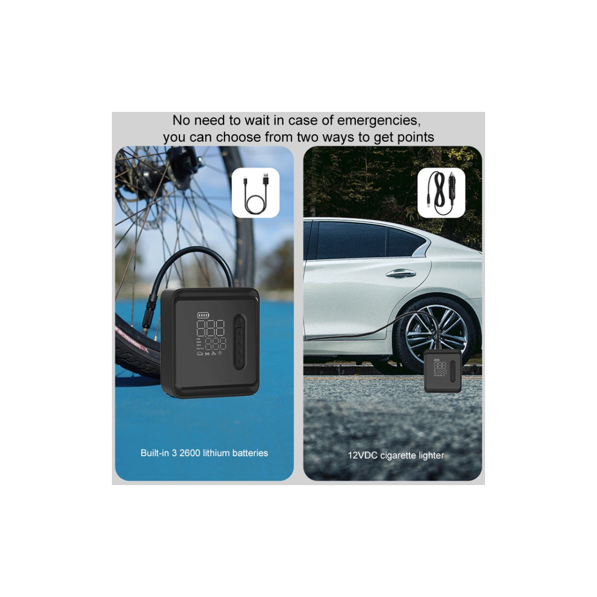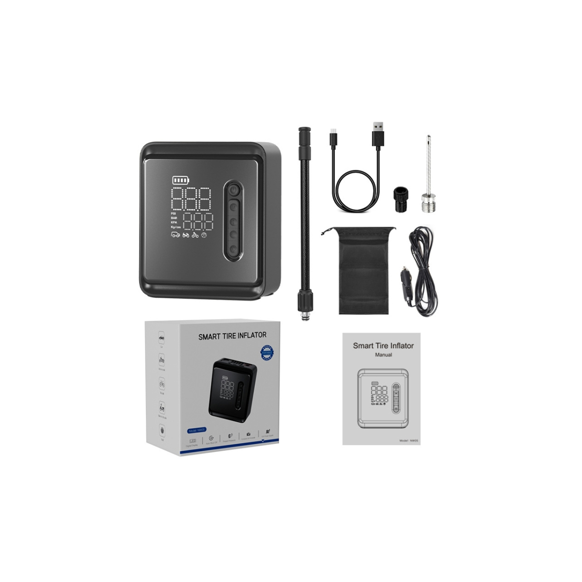 GloboStar® 81490 Φορητή Επαναφορτιζόμενη Ψηφιακή Τρόμπα - Κομπρέσορας Αέρος Αυτοκινήτου & Μοτοσυκλέτας - με Οθόνη LCD & Ενσωματωμένη Επαναφορτιζόμενη Μπαταρία Λιθίου 7800 mAh - Πίεση Αέρος Max 150 PSI - 5 Προγράμματα - Φακό LED - Power Bank με έξοδο USB 2