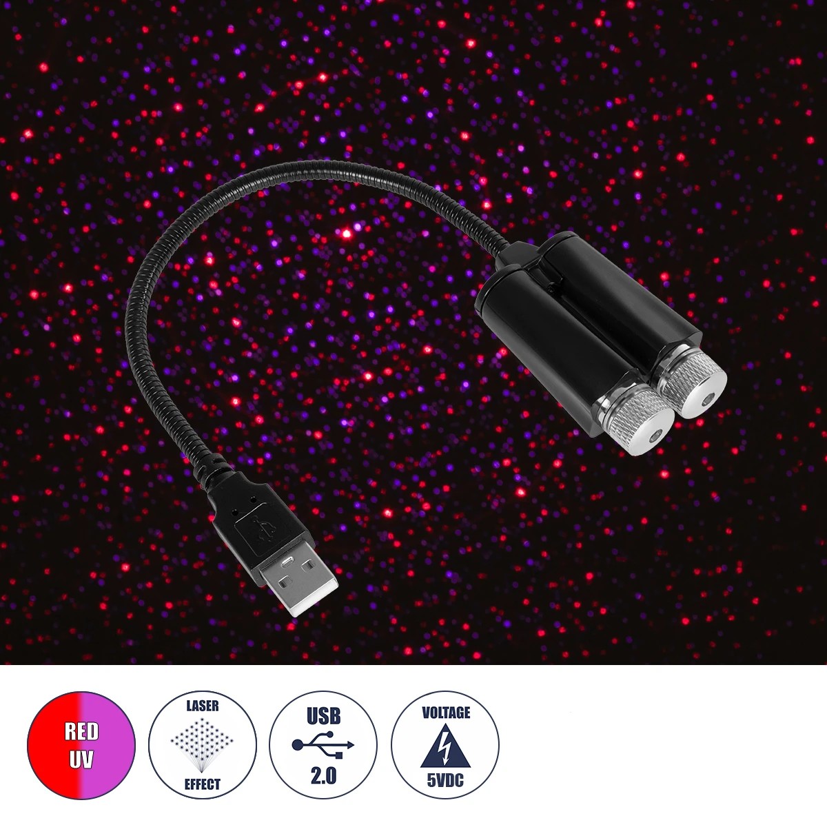 GloboStar® 81845-DUAL Διακοσμητικό Φωτιστικό Ειδικών Φωτορυθμικών Εφέ PARTY Disco LASER DC 5V με Καλώδιο Τροφοδοσίας USB Κόκκινο IP20 Μ3.5 x Π3.5 x Υ21.5cm