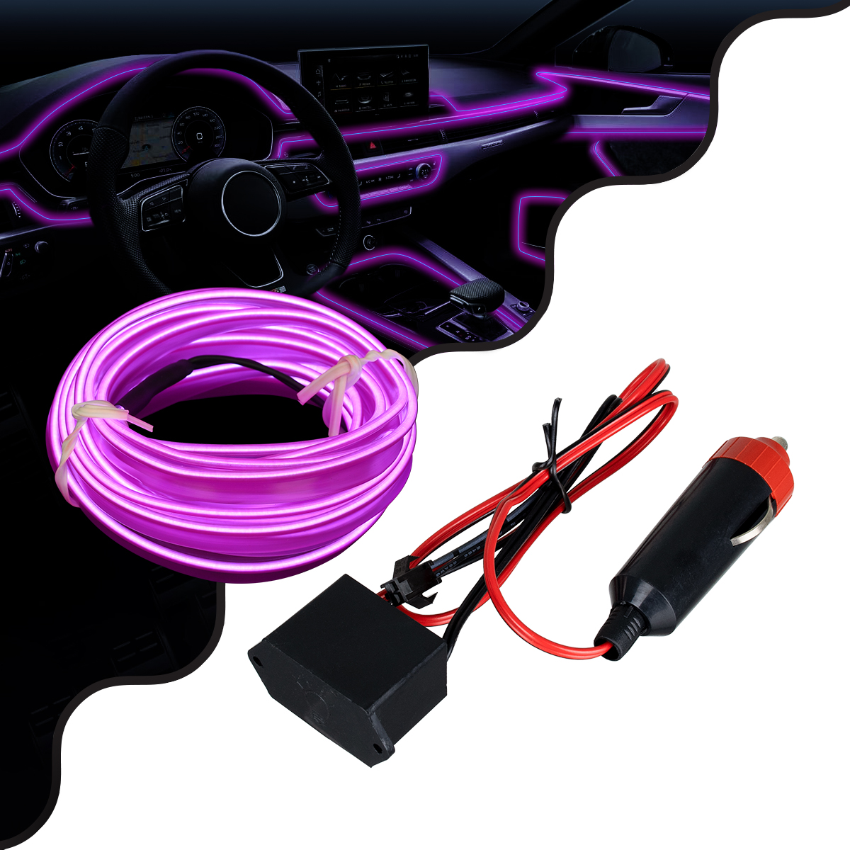 GloboStar® 82207 TUBE 360° Degree Διακοσμητική EL-Wire Neon Αυτοκινήτου Κορδόνι ΣΕΤ 3m 1W/3m 30lm/m 360° DC 12V με Βύσμα Αναπτήρα Αυτοκινήτου Αδιάβροχη IP68 Μωβ