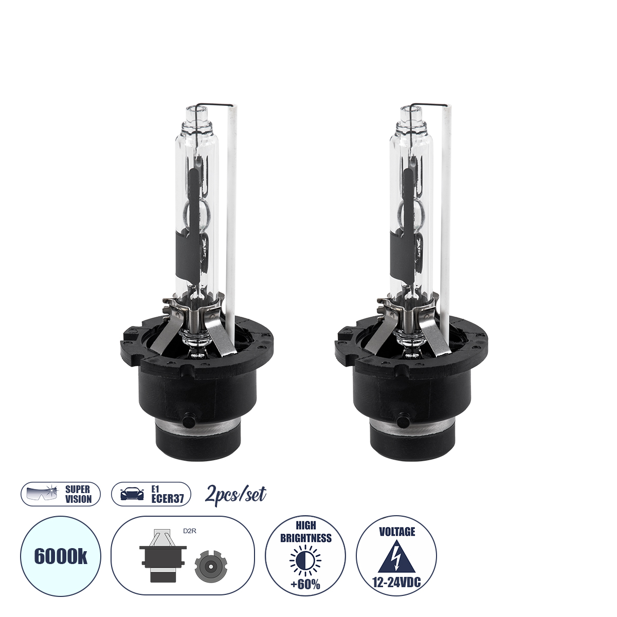 GLOBOSTAR® HID 84033 Λάμπα Xenon D2R Super Vision Υψηλής Φωτεινότητας +60% CANbus E1 ECER37 55W/110W 5000lmΨυχρό Λευκό 6000K - Μ3.2 x Π3.2 x Υ7.5cm - Πακέτο 2 Τεμαχίων - 2 Χρόνια Εγγύηση