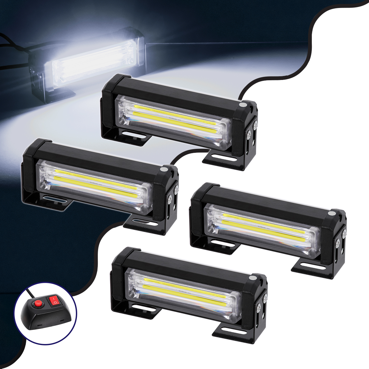 GloboStar® 85034 PRO Series ΣΕΤ 4 x Μπάρες Σήμανσης Οχήματος Ασθενοφόρου για Αυτοκίνητα & Φορτηγά 13 Προγραμμάτων Φωτισμού LED CREE CXB COB 36W DC 10-30V Αδιάβροχο IP65 Ψυχρό Λευκό 6000K
