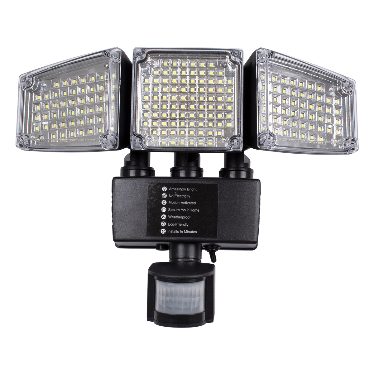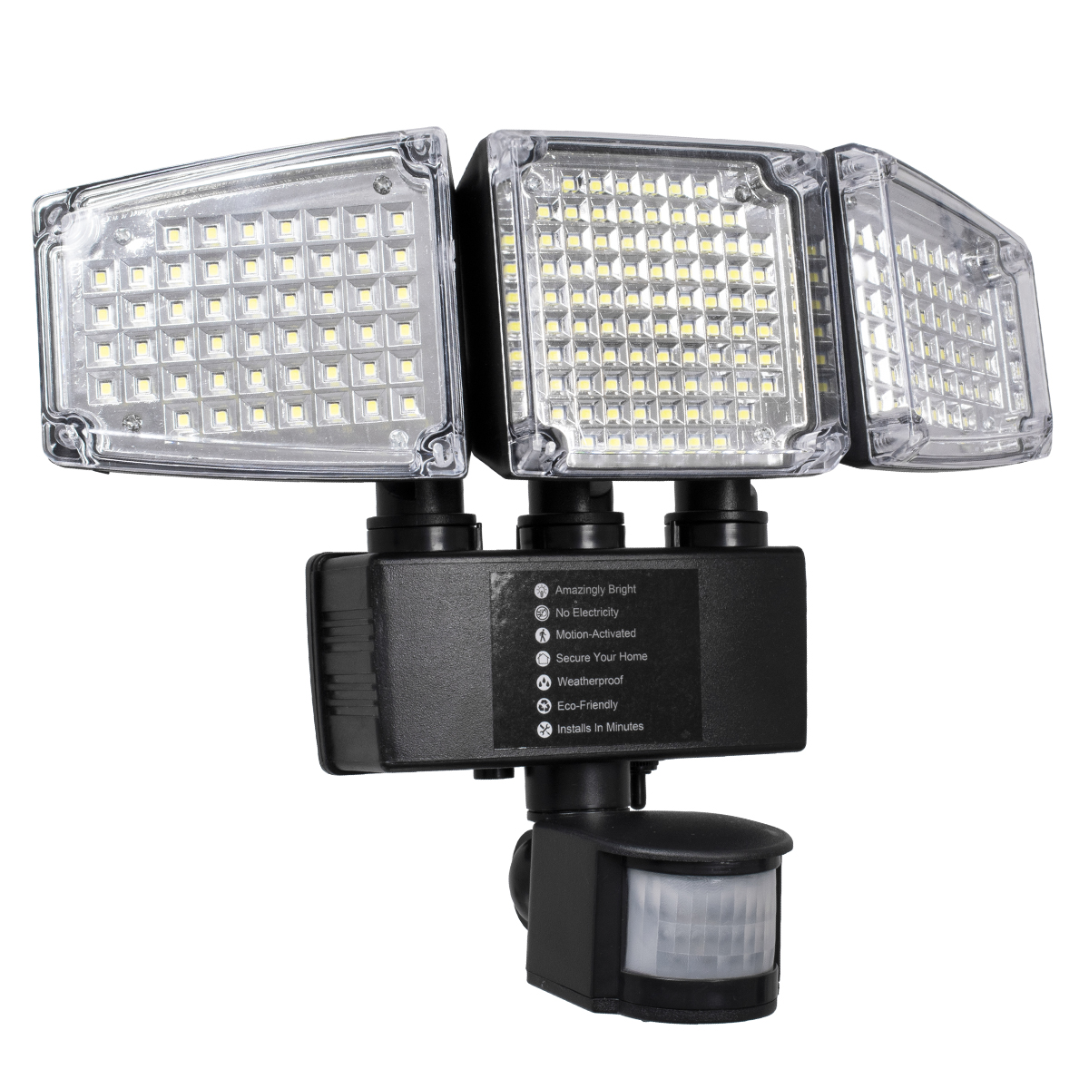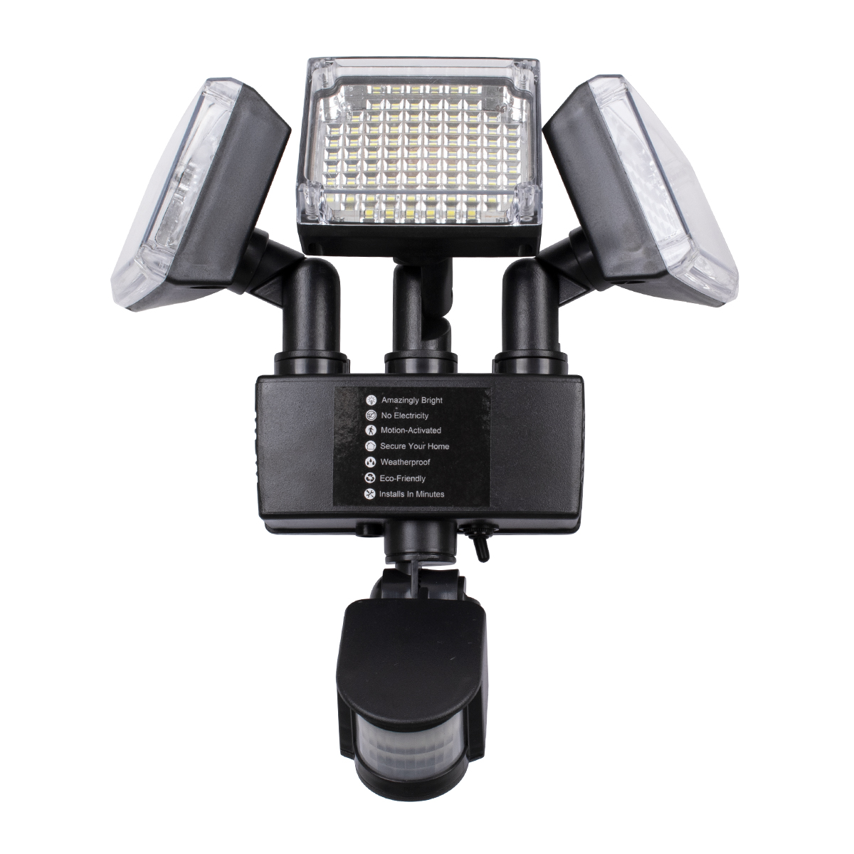GloboStar® 85711 Αυτόνομος Ηλιακός Προβολέας με Τρεις Περιστρεφόμενες Κεφαλές LED SMD 2835 50W 2500lm με Ενσωματωμένη Μπαταρία 3400mAh - Φωτοβολταϊκό Πάνελ με Αισθητήρα Ημέρας-Νύχτας - PIR Αισθητήρα Κίνησης Αδιάβροχο IP65 Ψυχρό Λευκό 6000K