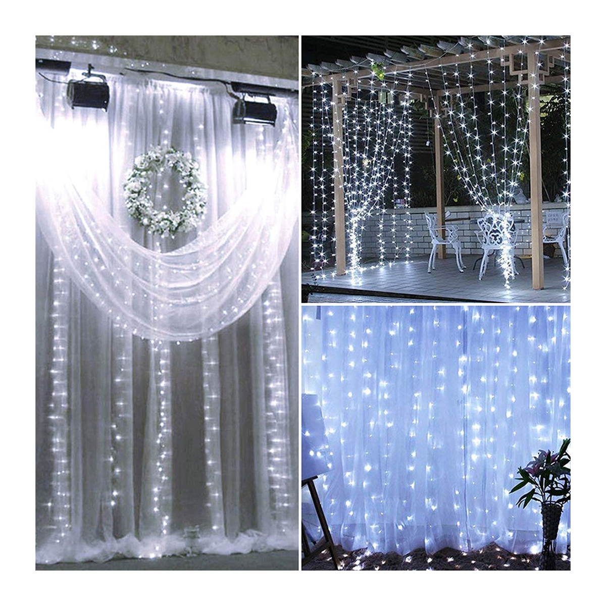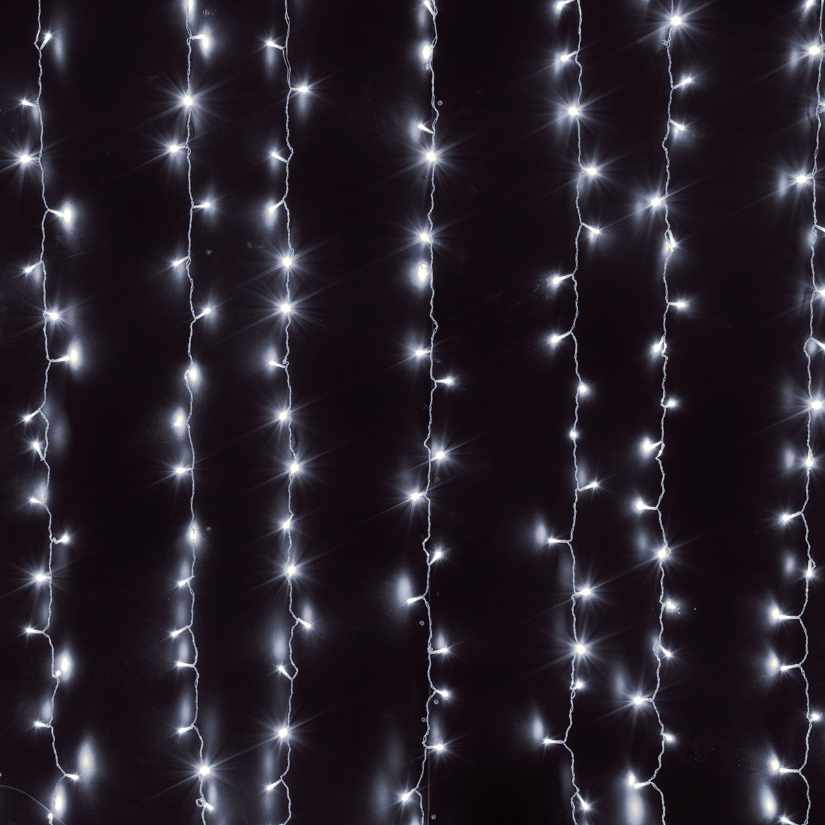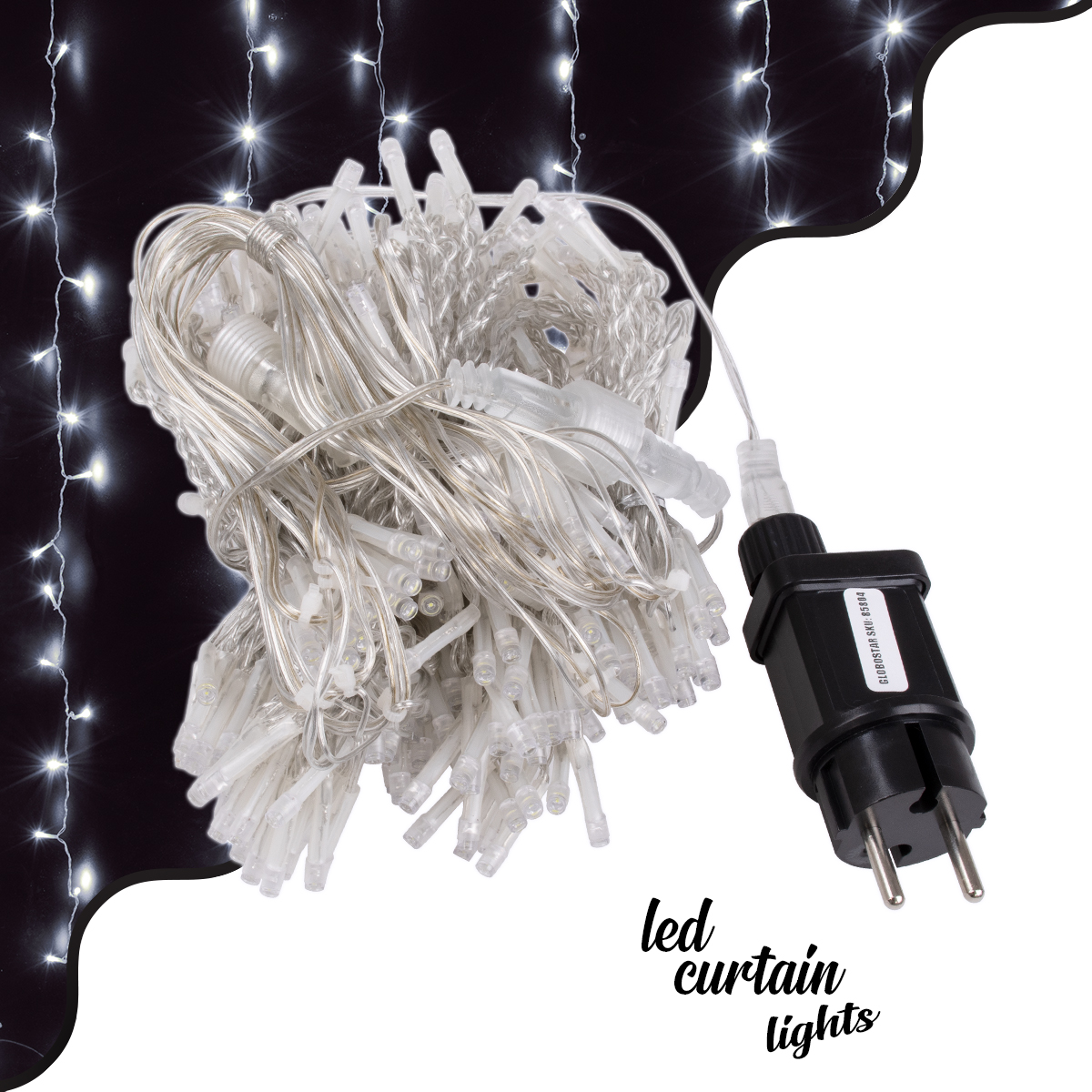 85804 Διακοσμητική Κουρτίνα 3 x 3 Μέτρα με Controller 8 Προγραμμάτων Φωτισμού - Επεκτεινόμενη 300 LED 6W AC 230V με Διάφανο Καλώδιο & Πρίζα Schuko Αδιάβροχη IP44 Ψυχρό Λευκό 6000K Μ3 x Υ3m