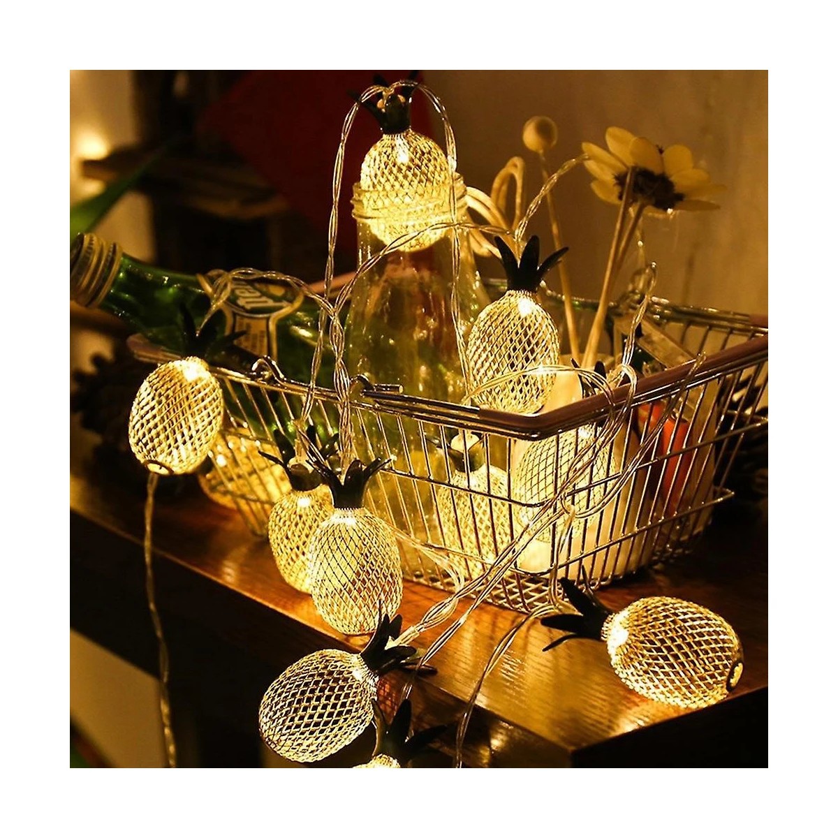 GloboStar® 85806 Διακοσμητική Γιρλάντα Pineapple Lamp 2 Μέτρα με Διακόπτη On/Off - 10 LED 1W με Μπαταρίες 2xAA & Διάφανο Καλώδιο IP44 Θερμό Λευκό 3000K Μ2m