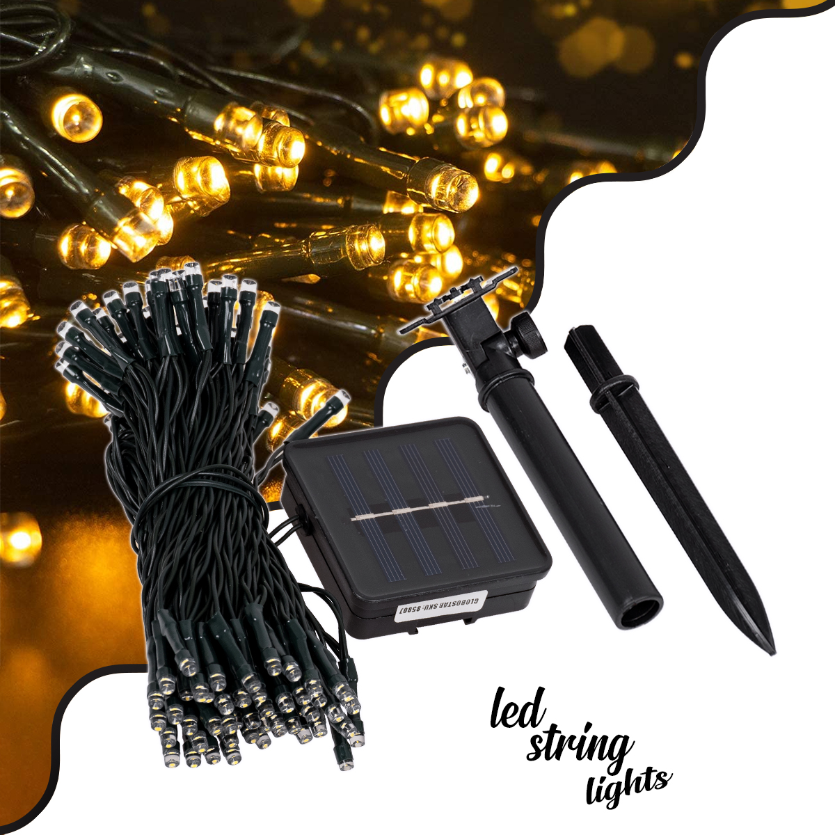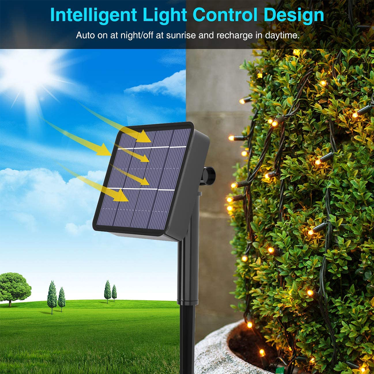 85807 Διακοσμητική Γιρλάντα 10 Μέτρων με Controller 8 Προγραμμάτων Φωτισμού - 100 LED 4W με Ενσωματωμένη Μπαταρία 600mAh - Φωτοβολταϊκό Πάνελ - Αισθητήρα Ημέρας-Νύχτας - Βάση Κήπου & Σκούρο Πράσινο Καλώδιο Αδιάβροχη IP65 Θερμό Λευκό 3000K Μ10m