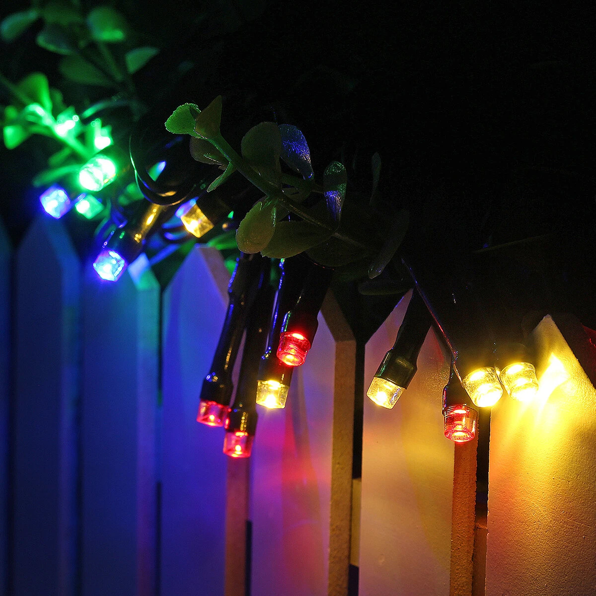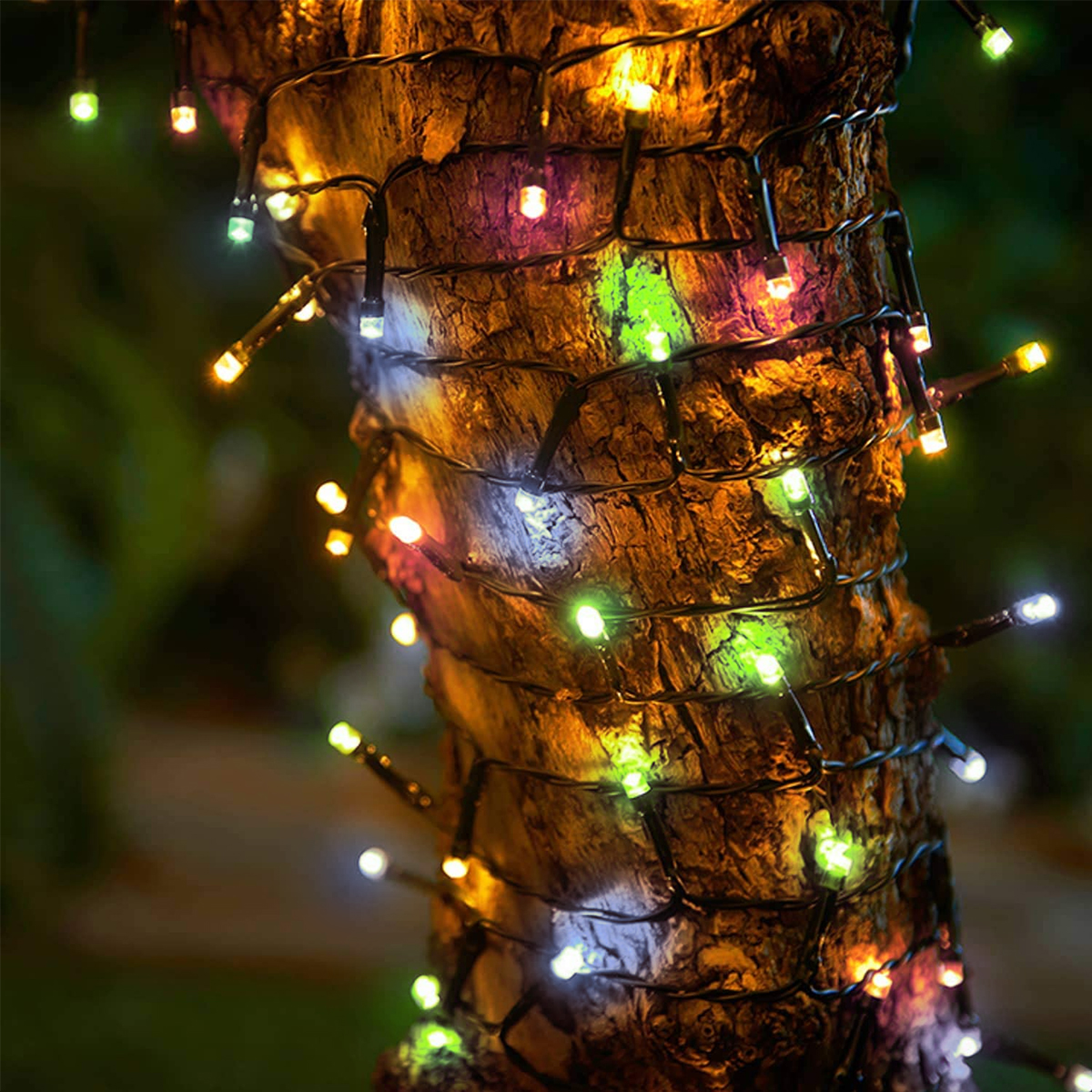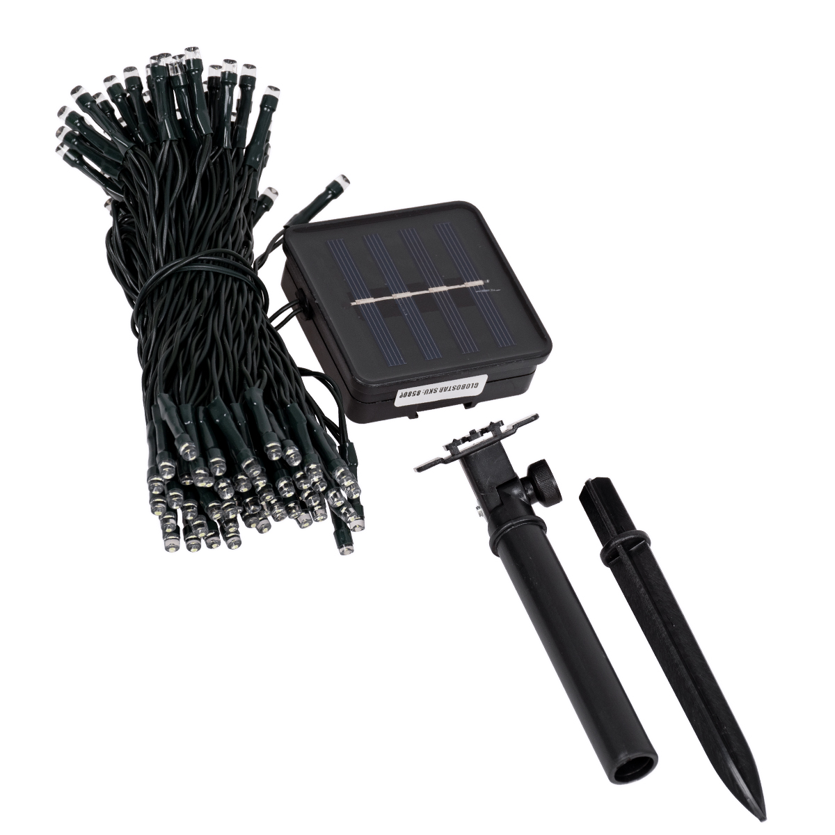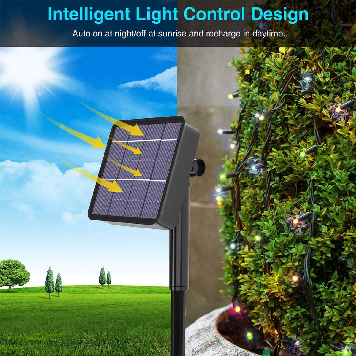 85809 Διακοσμητική Γιρλάντα 10 Μέτρων με Controller 8 Προγραμμάτων Φωτισμού - 100 LED 4W με Ενσωματωμένη Μπαταρία 600mAh - Φωτοβολταϊκό Πάνελ - Αισθητήρα Ημέρας-Νύχτας - Βάση Κήπου & Σκούρο Πράσινο Καλώδιο Αδιάβροχη IP65 Πολύχρωμη RGB Μ10m