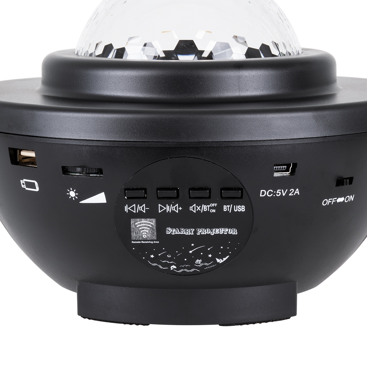 GloboStar® 85817 Μαύρο Επιτραπέζιο Διακοσμητικό Φωτιστικό Ειδικών Εφε NIGHT GALAXY WORLD 3D LED 10W DC 5V 2200mAh Επαναφορτιζόμενο με Bluetooth Speaker - Sound Activated - Καλώδιο Τροφοδοσίας USB και Ασύρματο Χειριστήριο RF 2.4Ghz Πολύχρωμo RGBW Dimmable