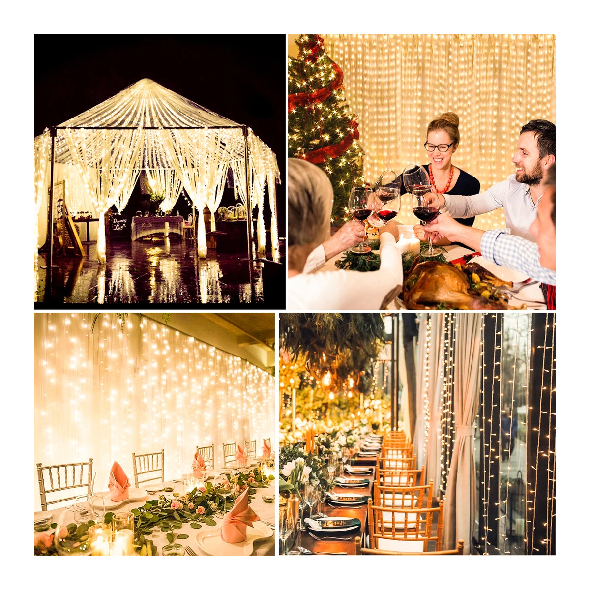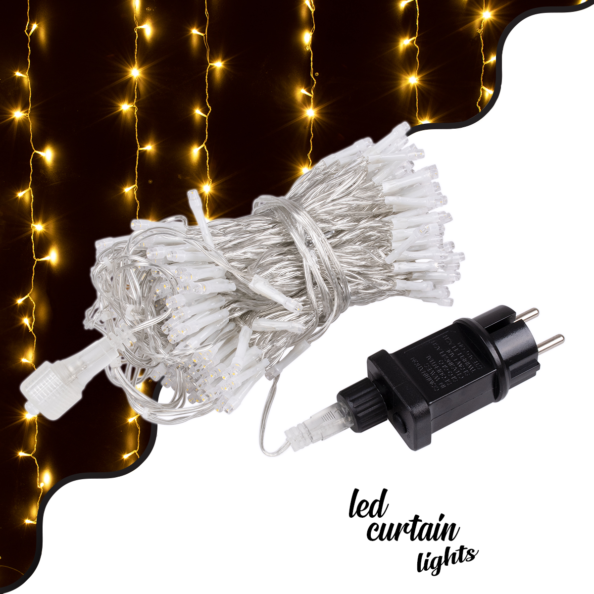 85826 Διακοσμητική Κουρτίνα 3 x 3 Μέτρα με Controller 8 Προγραμμάτων Εναλλαγών Φωτισμού - Επεκτεινόμενη 300 LED 3.6W AC 230V με Διάφανο Καλώδιο & Πρίζα Schuko Αδιάβροχη IP44 Θερμό Λευκό 2700K Μ3 x Υ3m