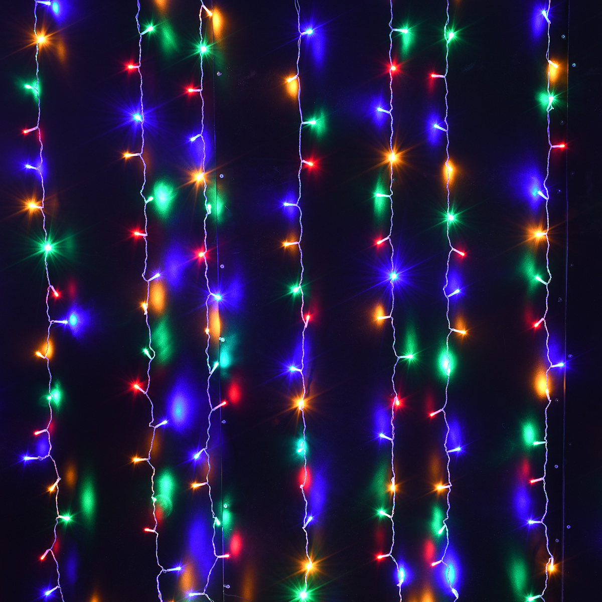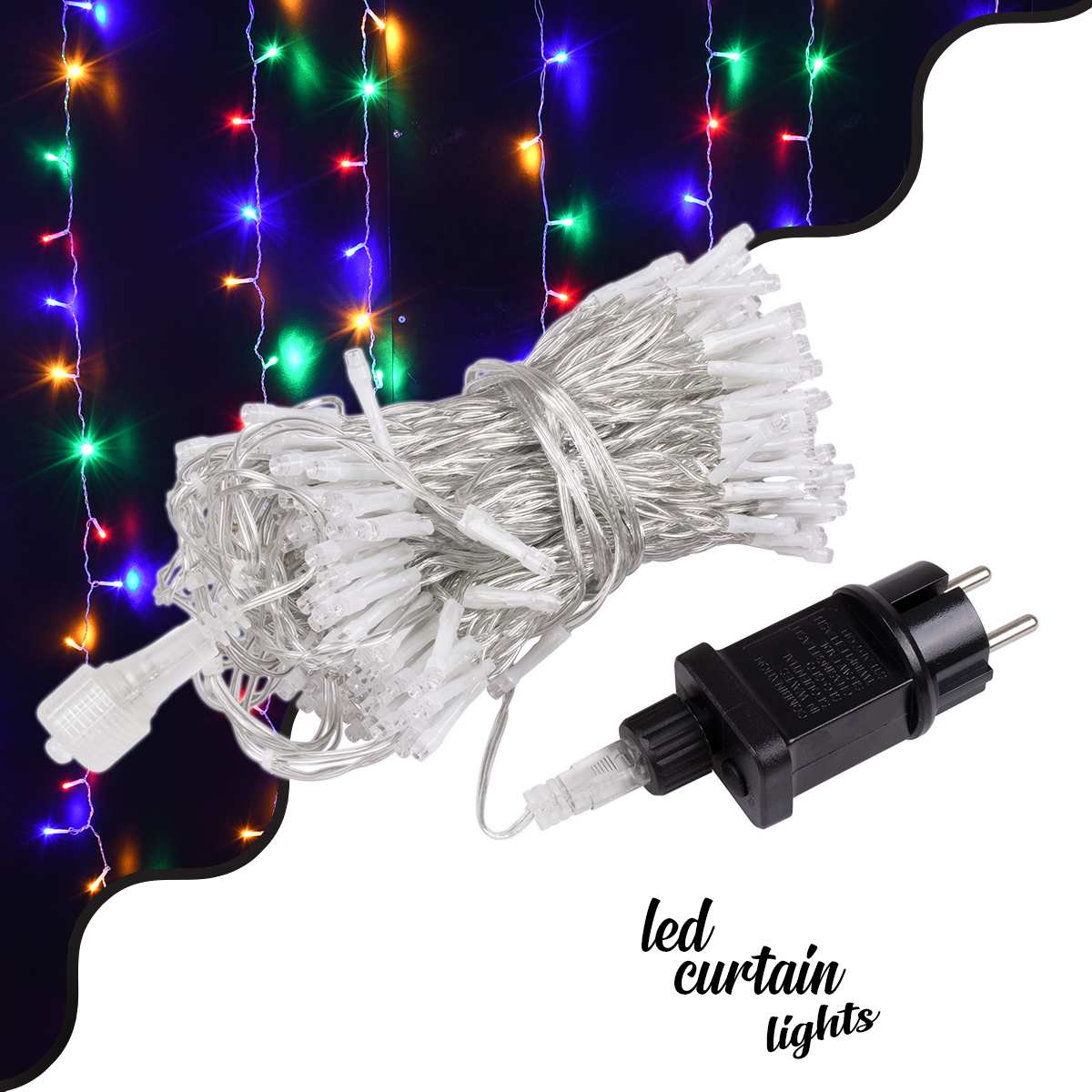85829 Διακοσμητική Κουρτίνα 3 x 3 Μέτρα με Controller 8 Προγραμμάτων Φωτισμού - Επεκτεινόμενη 300 LED 3.6W AC 230V με Διάφανο Καλώδιο & Πρίζα Schuko Αδιάβροχη IP44 Πολύχρωμο RGB Μ3 x Υ3m