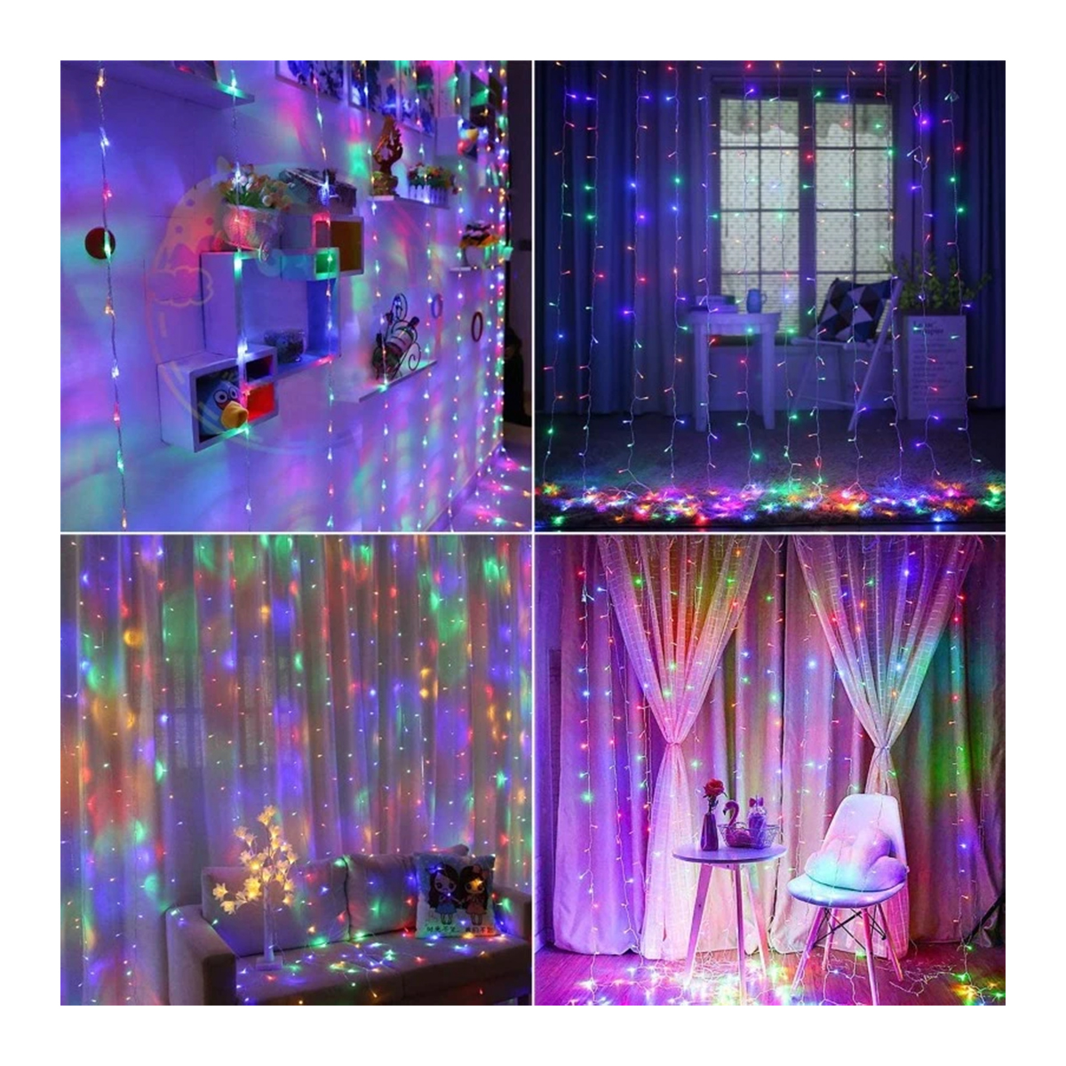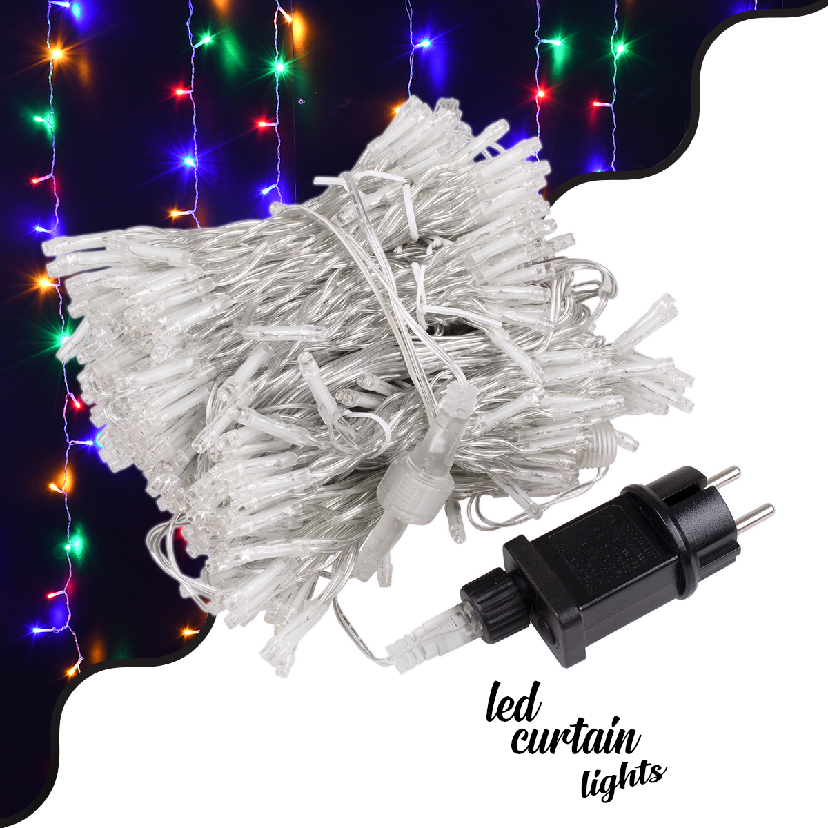 85832 Διακοσμητική Κουρτίνα 6 x 3 Μέτρα με Controller 8 Προγραμμάτων Φωτισμού - Επεκτεινόμενη 600 LED 6W AC 230V με Διάφανο Καλώδιο & Πρίζα Schuko Αδιάβροχη IP44 Πολύχρωμο RGB Μ6 x Υ3m
