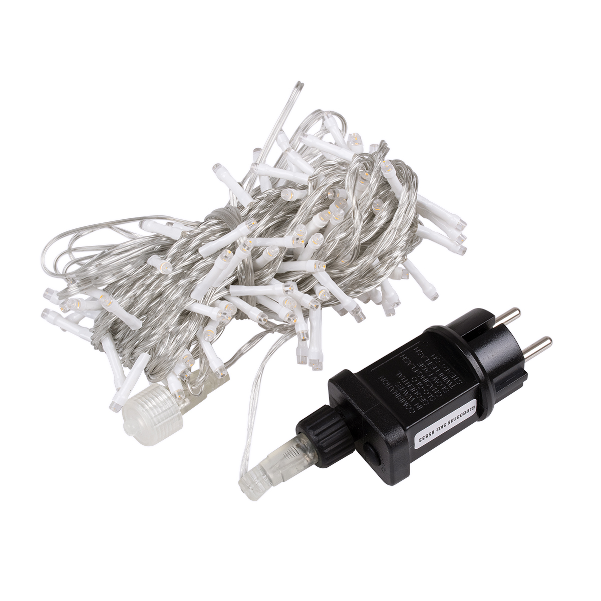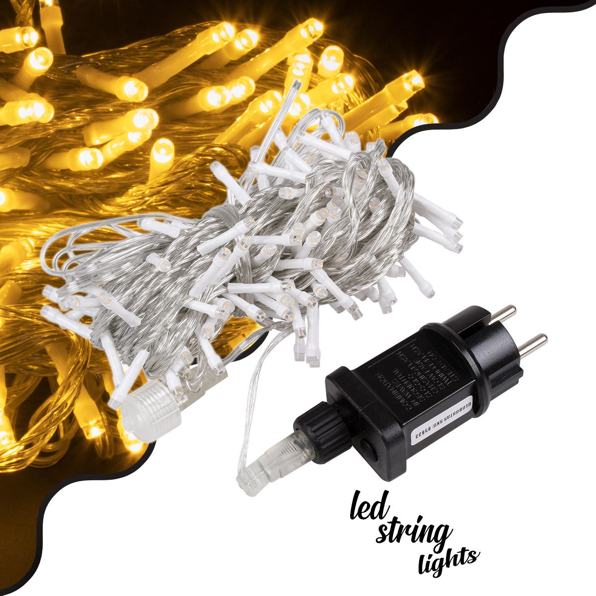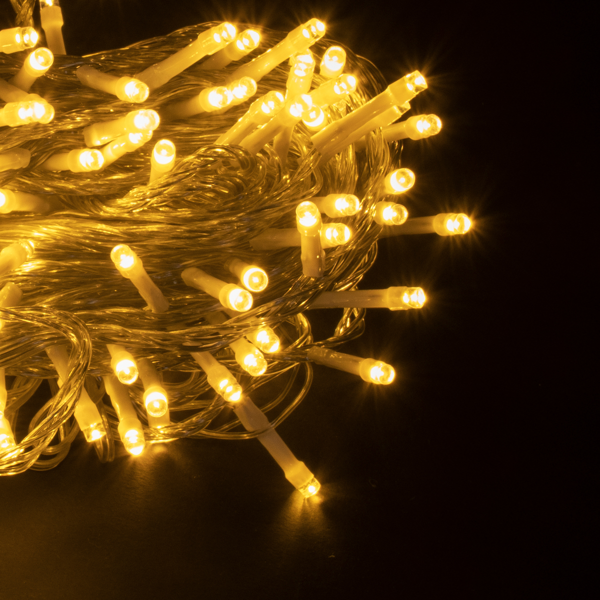 85833 Διακοσμητική Γιρλάντα 13 Μέτρα με Controller 8 Προγραμμάτων Εναλλαγών Φωτισμού - Επεκτεινόμενη 100 LED 3.6W AC 230V με Διάφανο Καλώδιο & Πρίζα Schuko Αδιάβροχη IP44 Θερμό Λευκό 3000K Μ13m