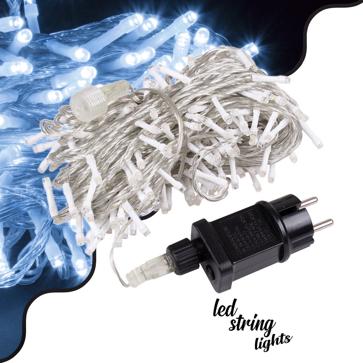 85837 Διακοσμητική Γιρλάντα 23 Μέτρα με Controller 8 Προγραμμάτων Εναλλαγών Φωτισμού - Επεκτεινόμενη 200 LED 3.6W AC 230V με Διάφανο Καλώδιο & Πρίζα Schuko Αδιάβροχη IP44 Ψυχρό Λευκό 6000K Μ23m