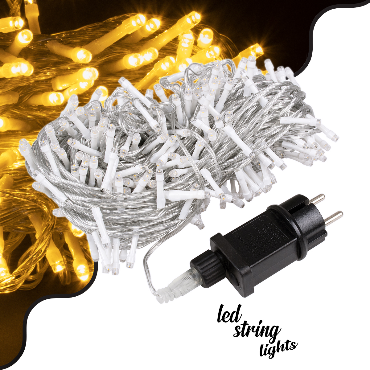 85839 Διακοσμητική Γιρλάντα 33 Μέτρα με Controller 8 Προγραμμάτων Εναλλαγών Φωτισμού - Επεκτεινόμενη 300 LED 3.6W AC 230V με Διάφανο Καλώδιο & Πρίζα Schuko Αδιάβροχη IP44 Θερμό Λευκό 3000K Μ33m