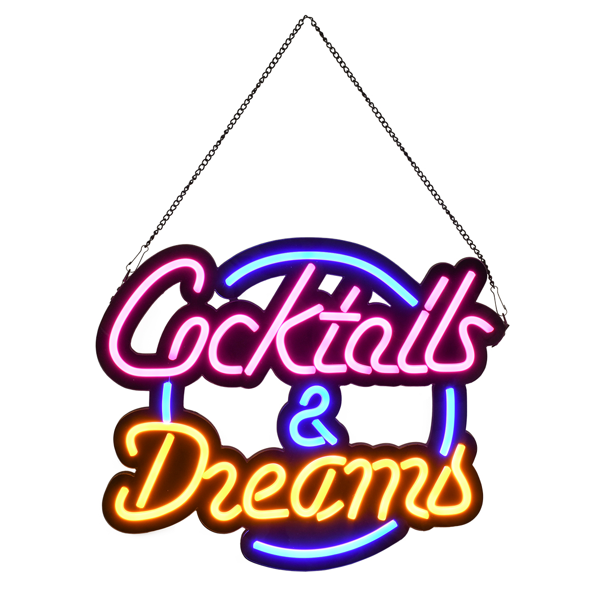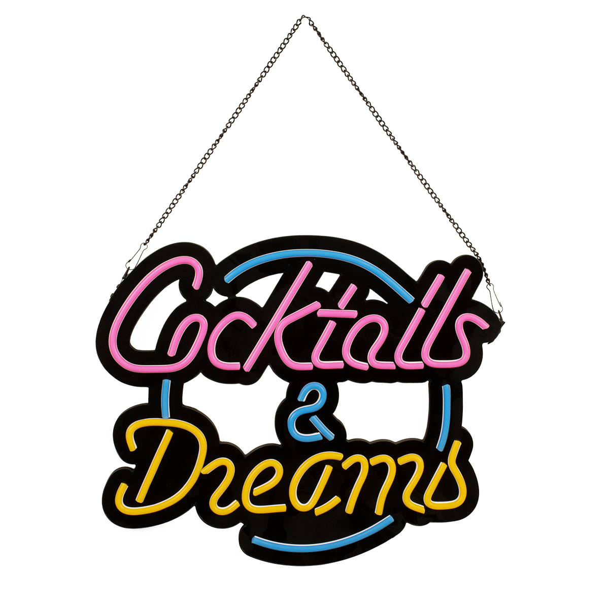 GloboStar® 85850 Φωτιστικό Ταμπέλα Φωτεινή Επιγραφή NEON LED Σήμανσης COCKTAILS & DREAMS 30W AC 230V με Διακόπτη On/Off Ροζ - Γαλάζιο - Κίτρινο