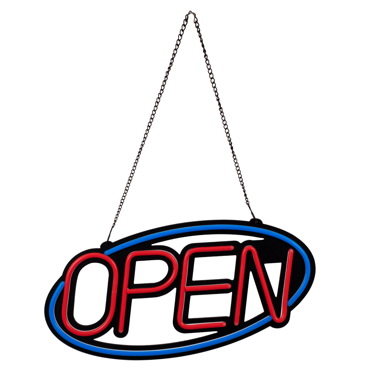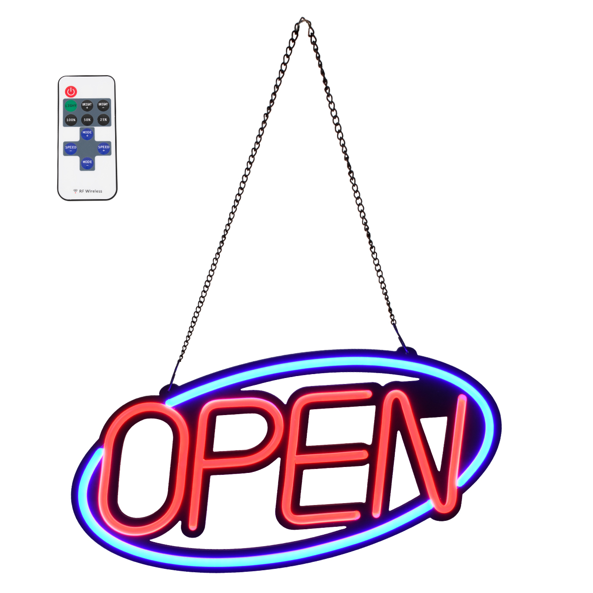 GloboStar® 85860 Φωτιστικό Ταμπέλα Φωτεινή Επιγραφή NEON LED Σήμανσης Animated Ovale OPEN 30W AC 230V με Διακόπτη On/Off και Ασύρματο Χειριστήριο IR Μπλε - Κόκκινο